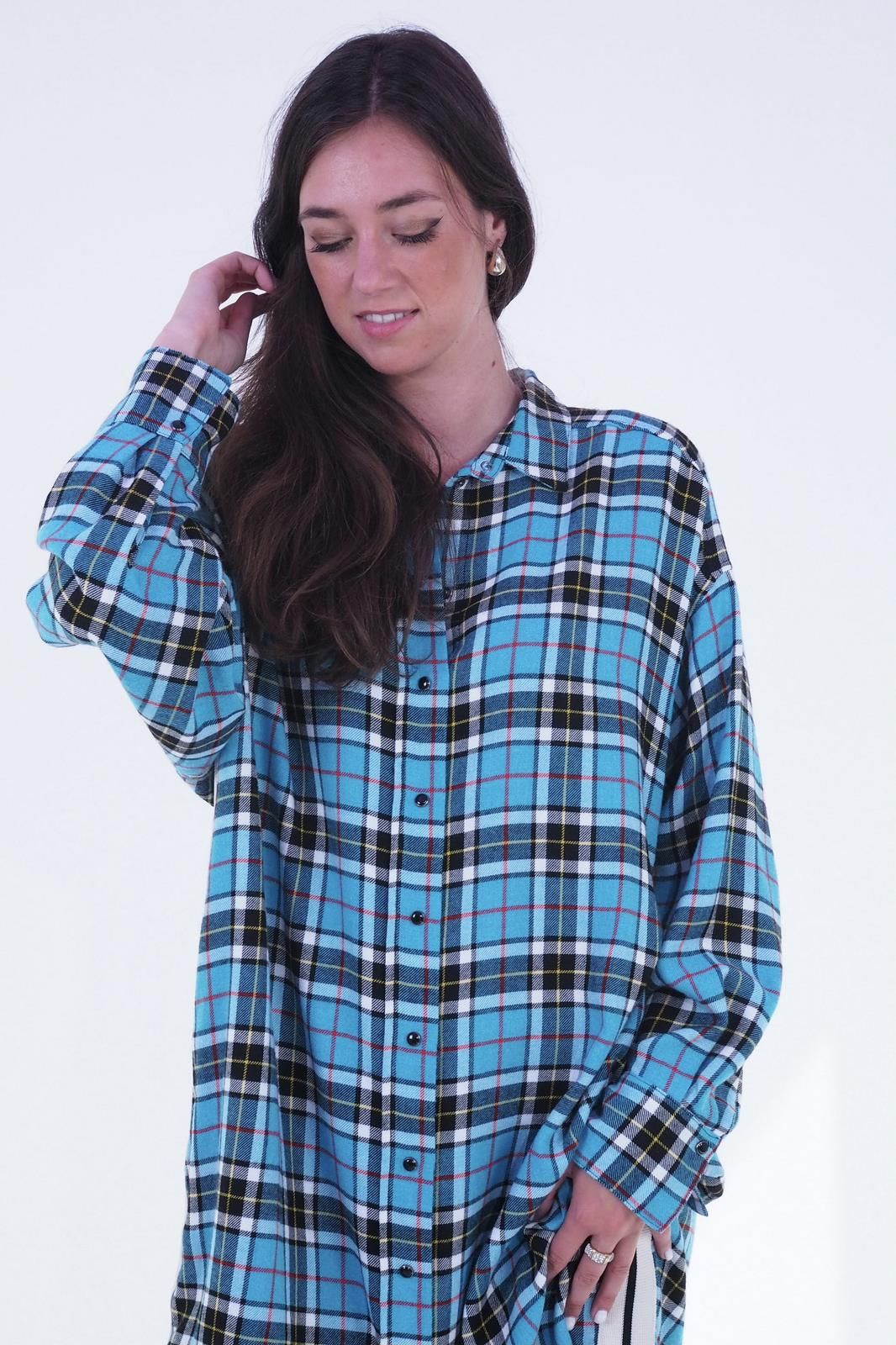 Robe à carreaux turquoise avec un logo 8 argenté dans le dos