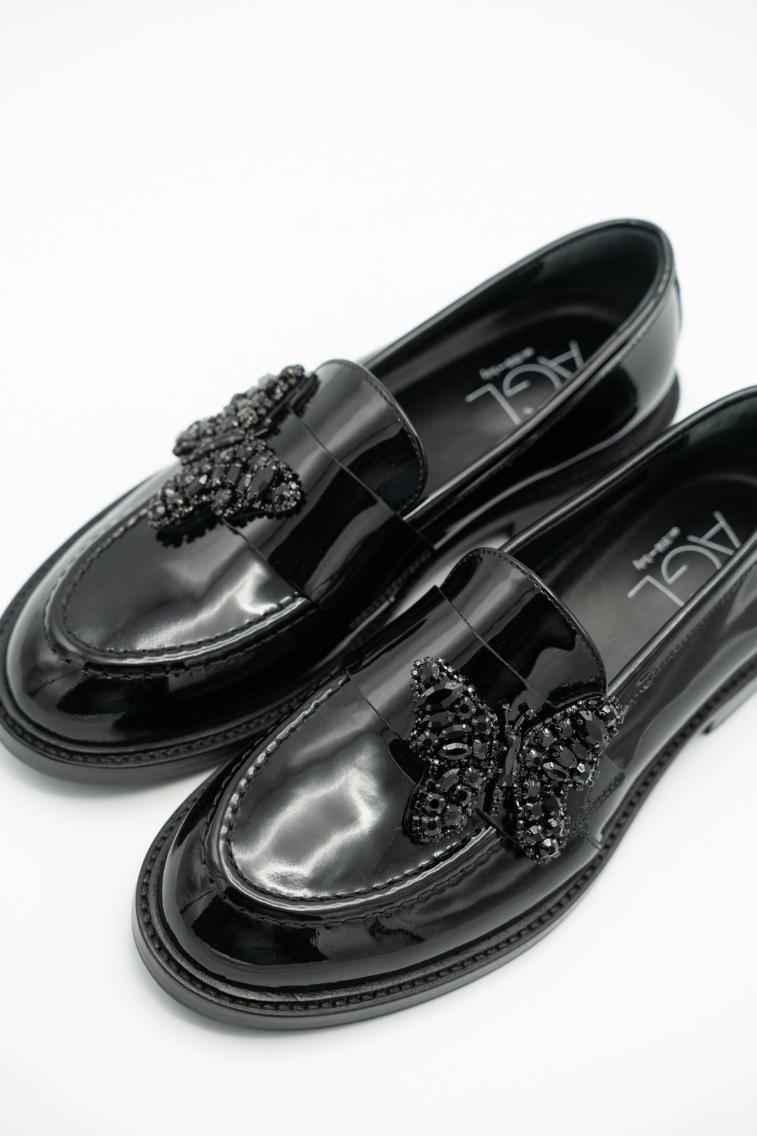 Mocassins papillon et strass Couleur noir Composition: cuir