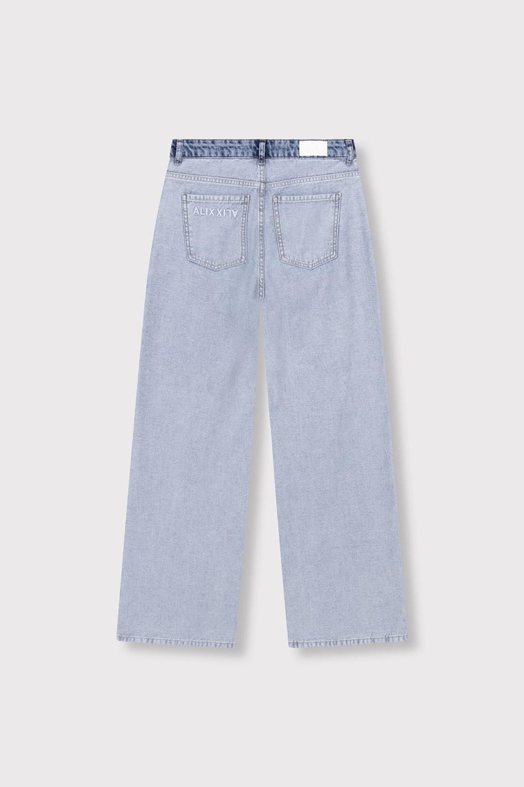 Avec une broderie « ALIX » en miroir sur la poche arrière et un motif « LX » à la ceinture