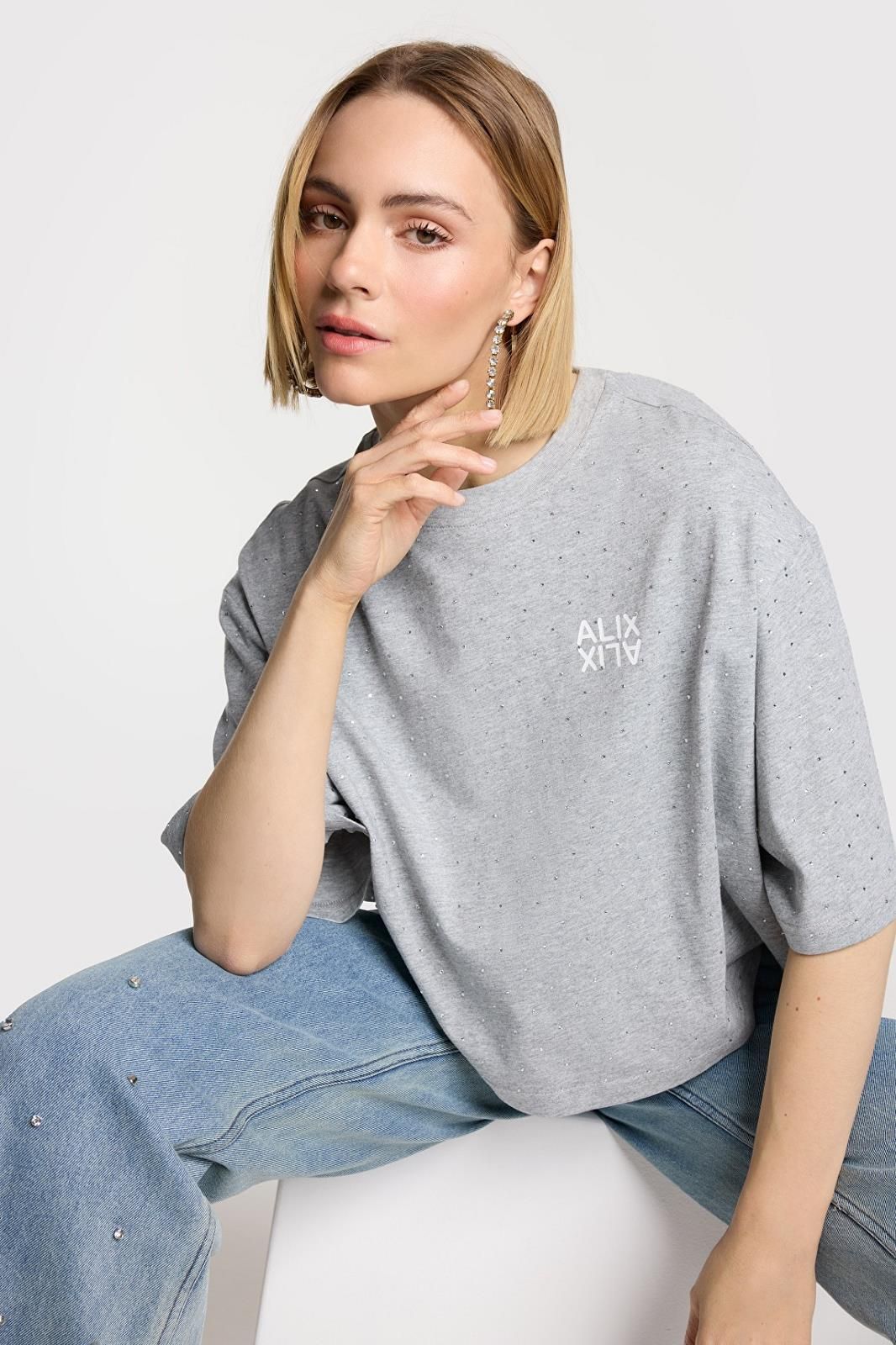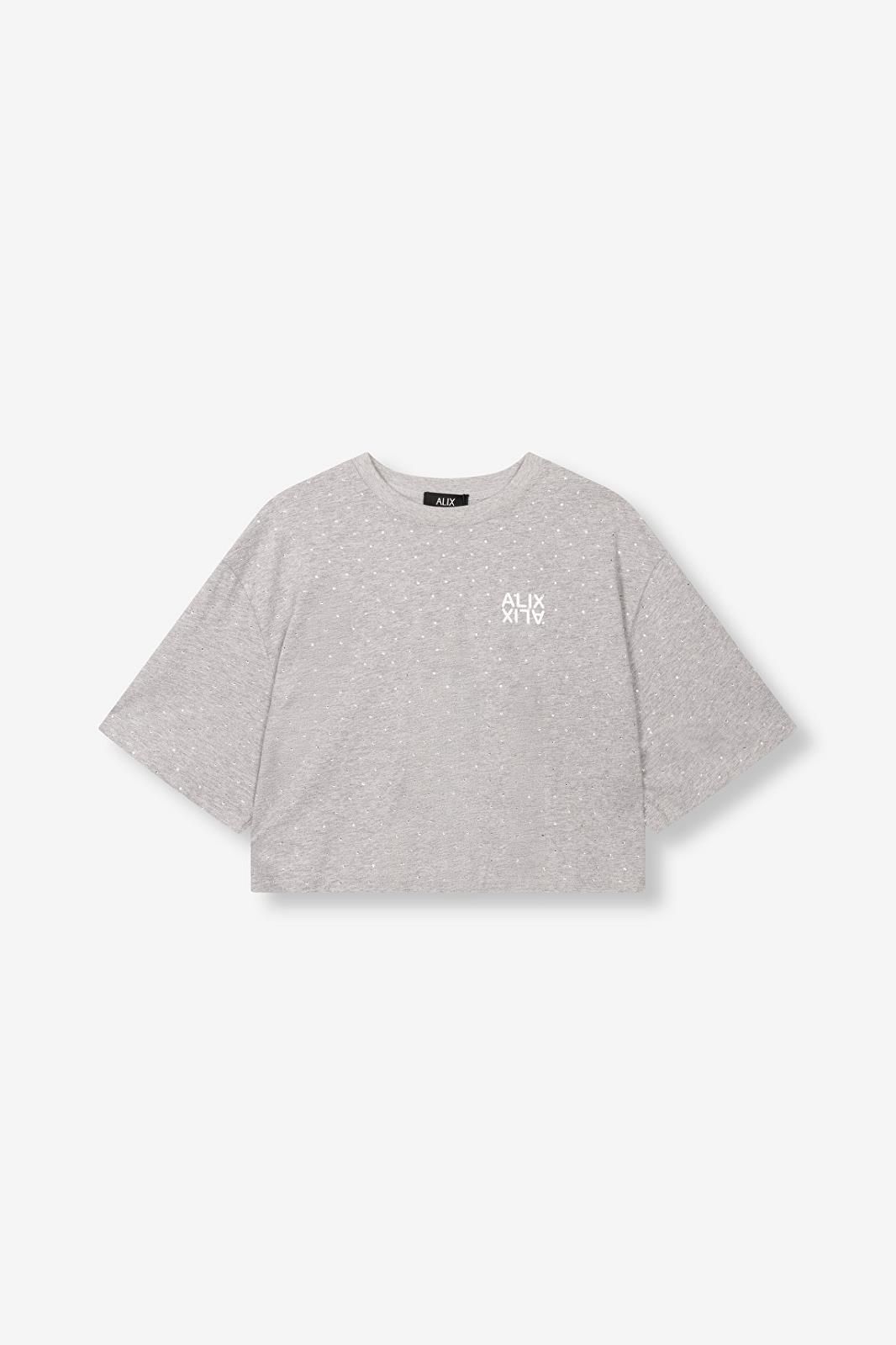 T-shirt court gris avec clous/strass