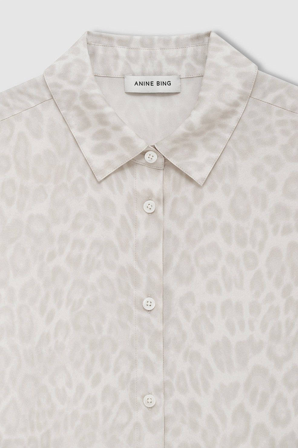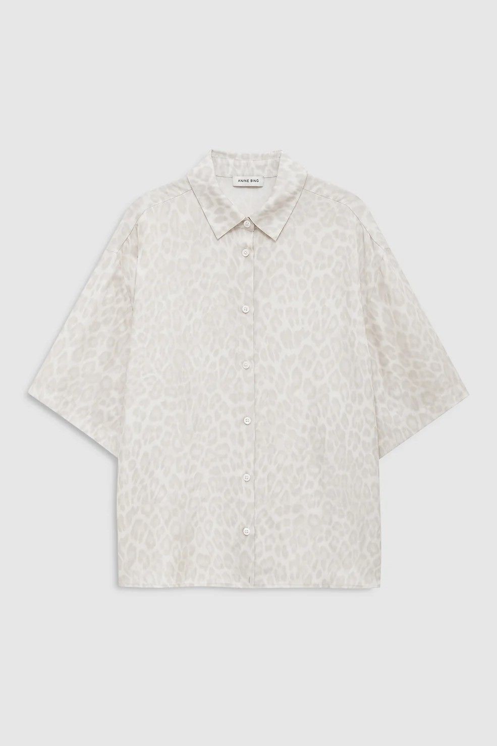 Minimaliste et audacieuse, cette chemise ANINE BING à imprimé léopard blanc adopte une coupe t-shirt moderne et décontractée. Une pièce facile à porter qui apporte une touche mode subtile et affirmée.