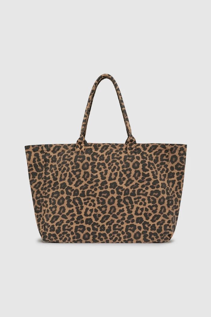 Tote bag Anine Bing recouvert d'un motif léopard 100% coton. Spacieux, il est parfait pour votre sortie en ville ou pour y glisser vos essentiels du travail.