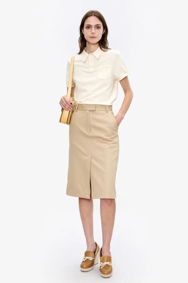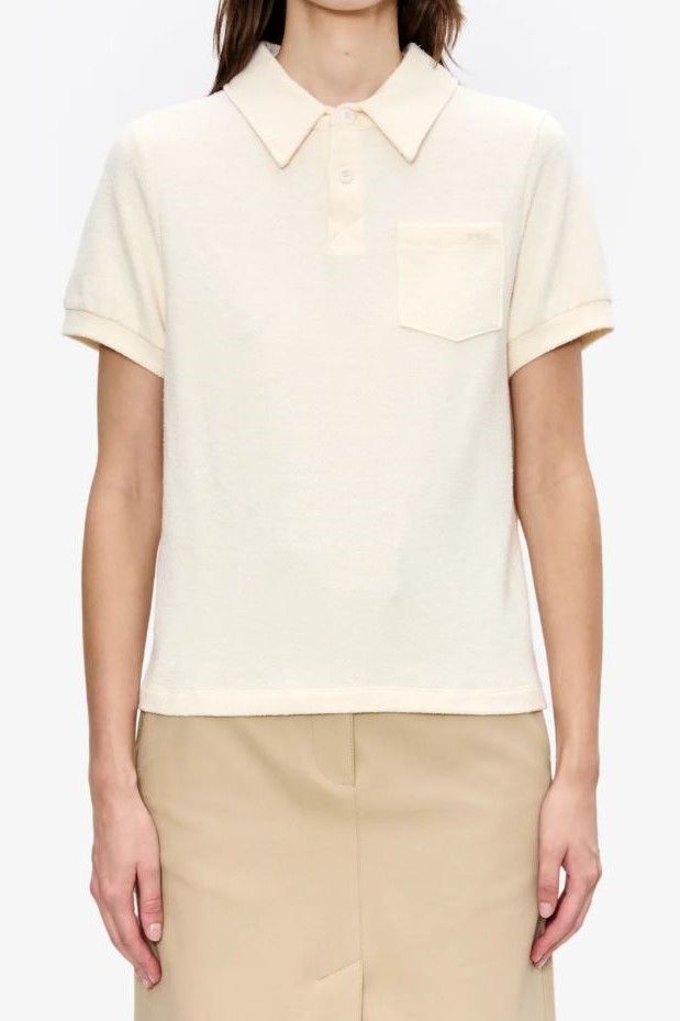 Polo court coton effet mousse écru