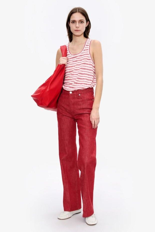 top ample rayé rouge écru