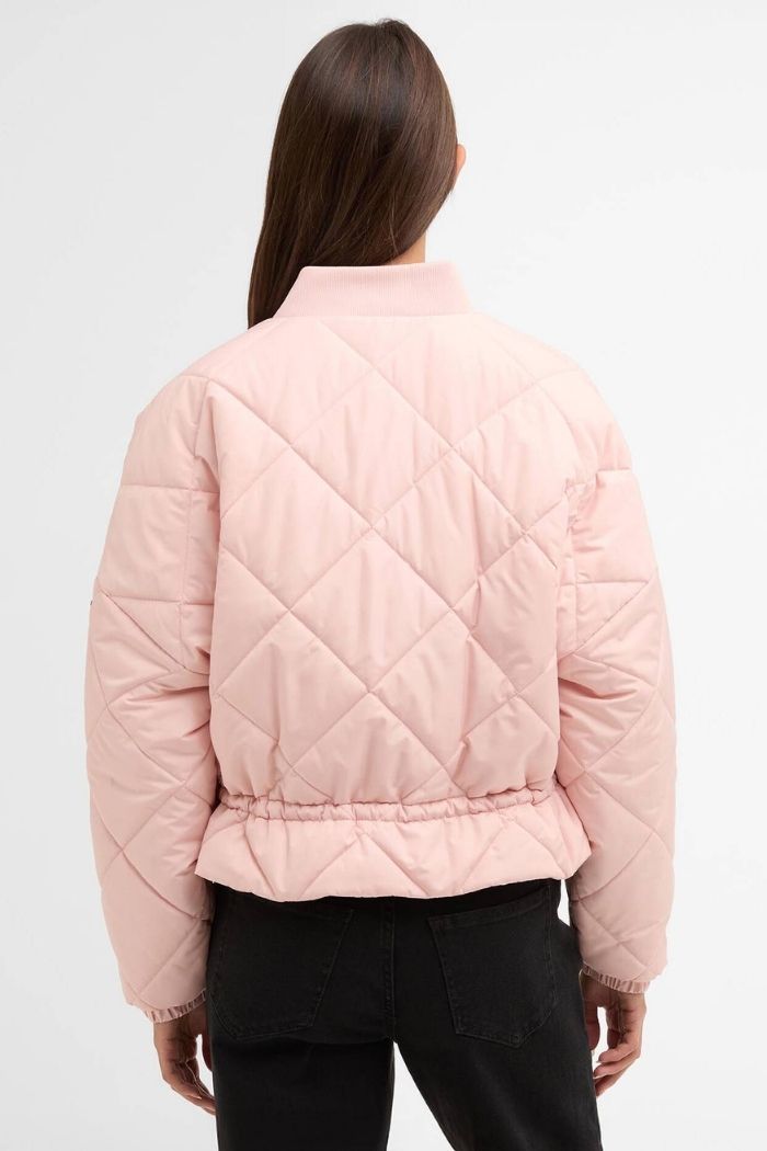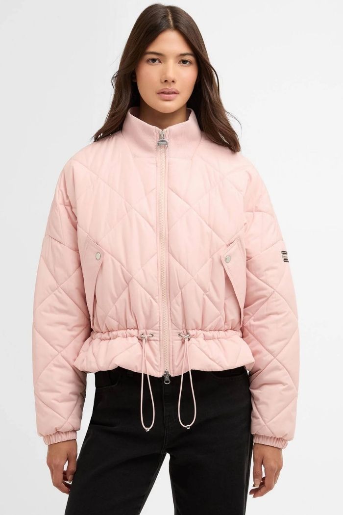 Veste matelassée BARBOUR International rose. On fond pour sa couleur girly et sa coupe moderne et élégante ! Chaude, confortable et fonctionelle, on la porte avec un jeans ou un pantalon élégant.