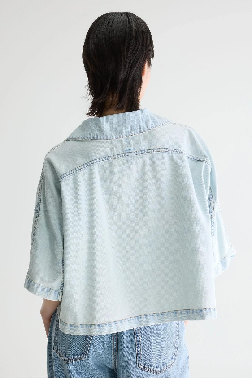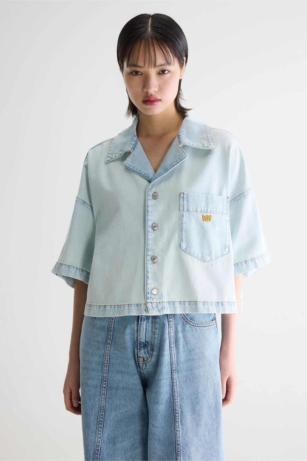 La chemise denim oversize BELLEROSE est un vrai coup de cœur ! Courte, en denim bleu clair et rehaussée de coutures contrastées, elle apporte une touche tendance à tous vos looks.