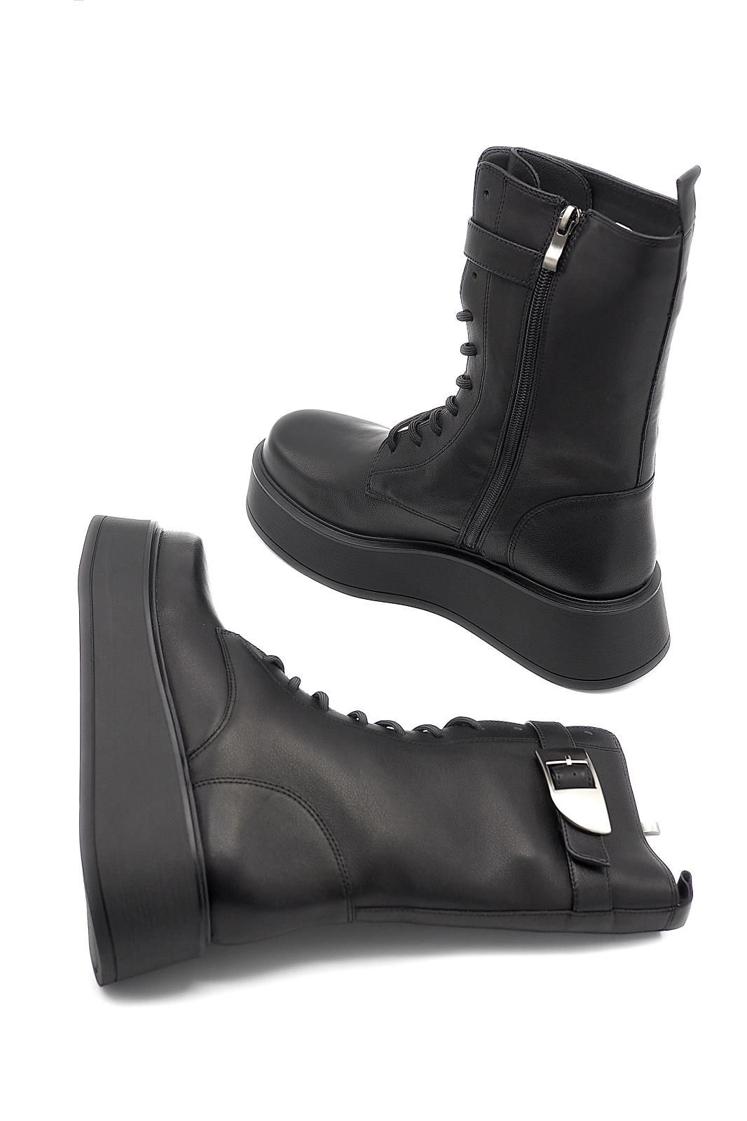 Boots biker Couleur noir Grosse semelle Lacets Talon zeppa
