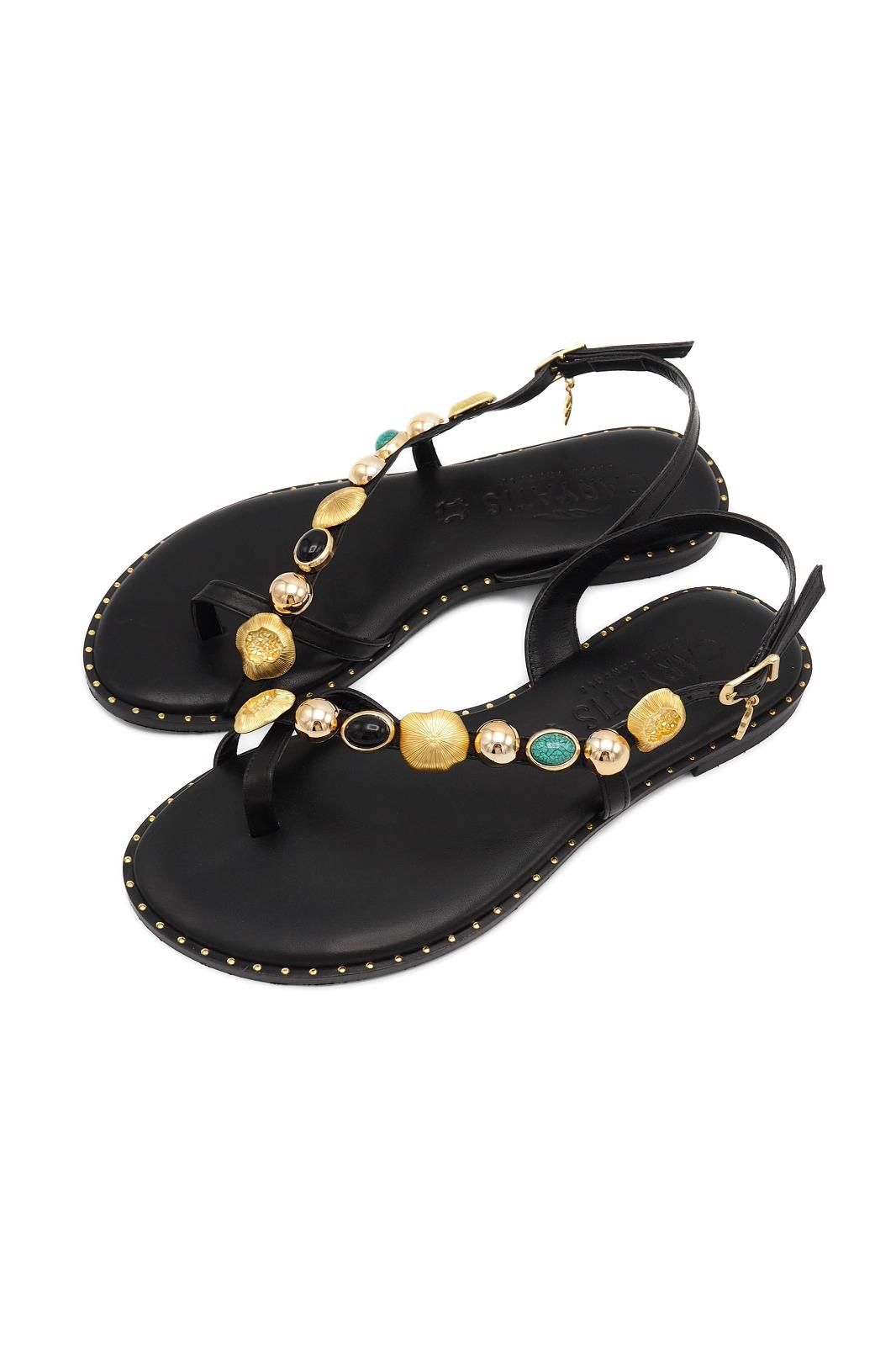 La sandale passe-orteil noire, délicatement décorée de pierres, allie élégance et sophistication pour parfaire vos looks.