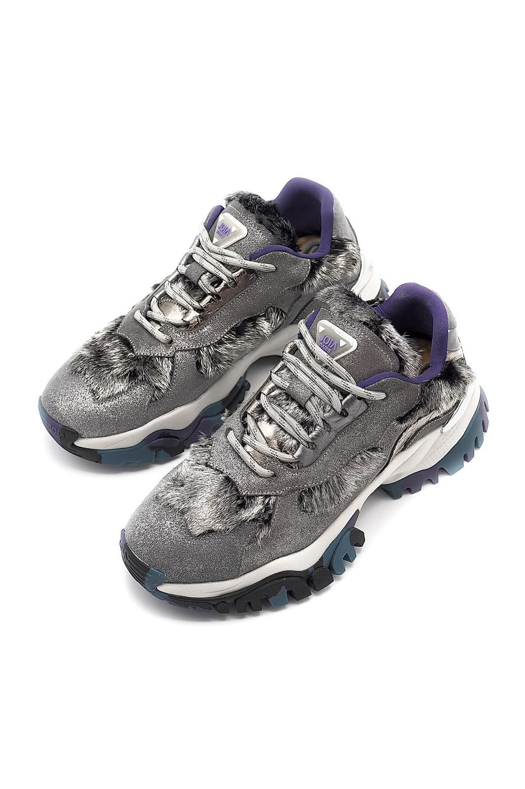 Baskets gris acier Détails viola à l'intérieur Lacets blanc
