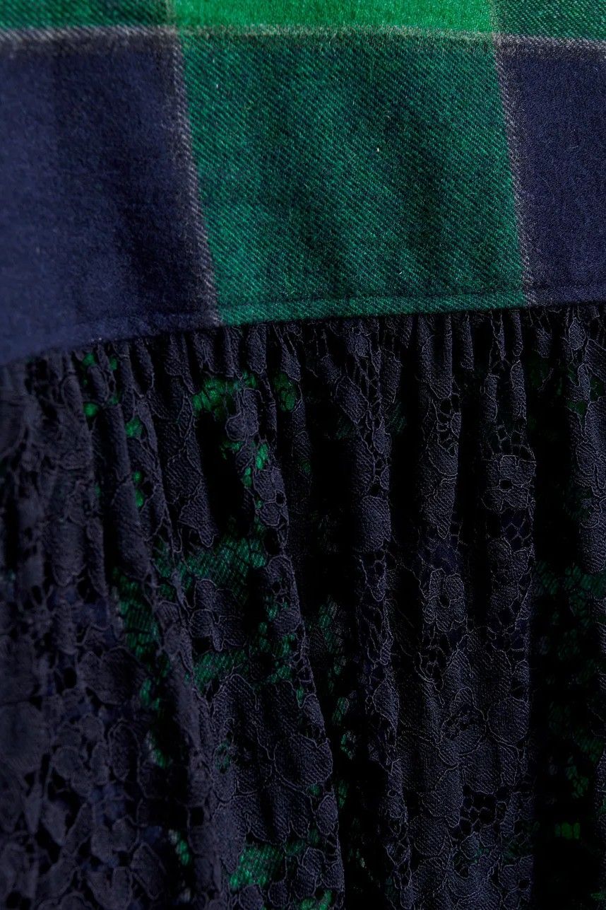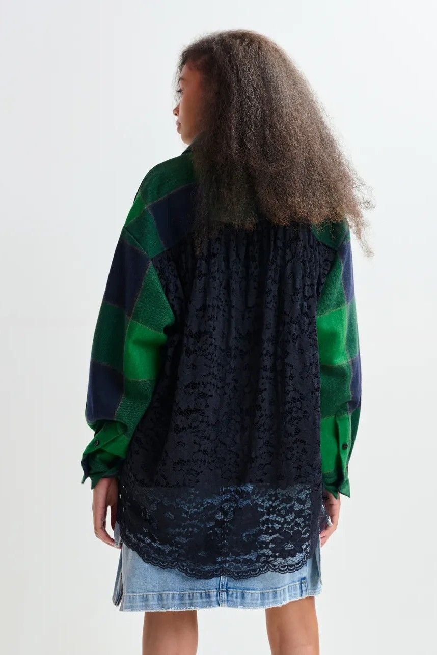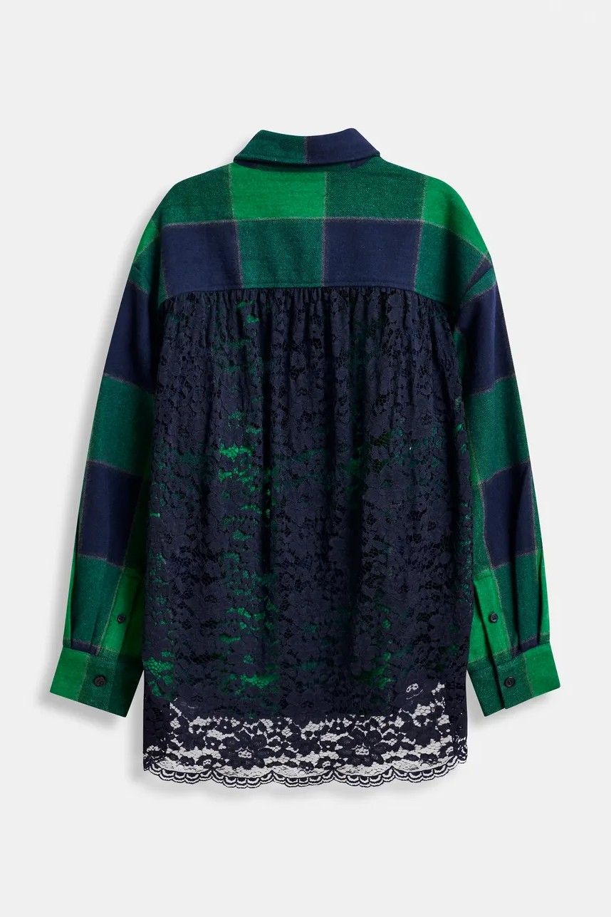 Chemise à carreaux en flanelle verte et bleu marine avec dos en dentelle