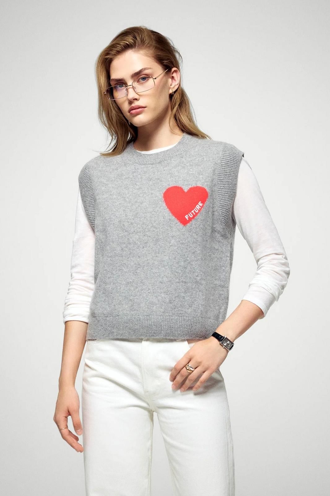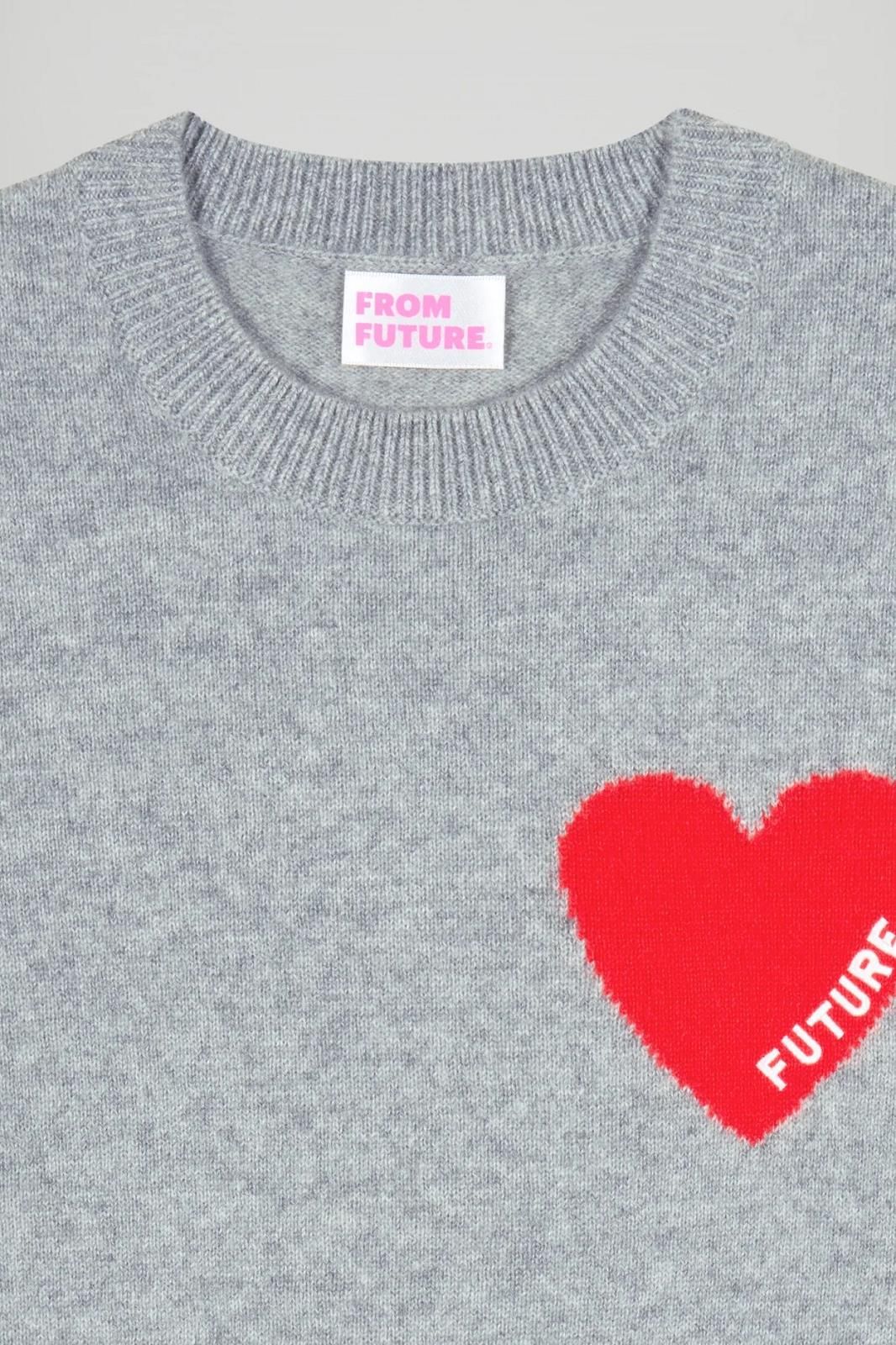 Cœur brodé en intarsia avec l'inscription « FUTURE » sur la poitrine