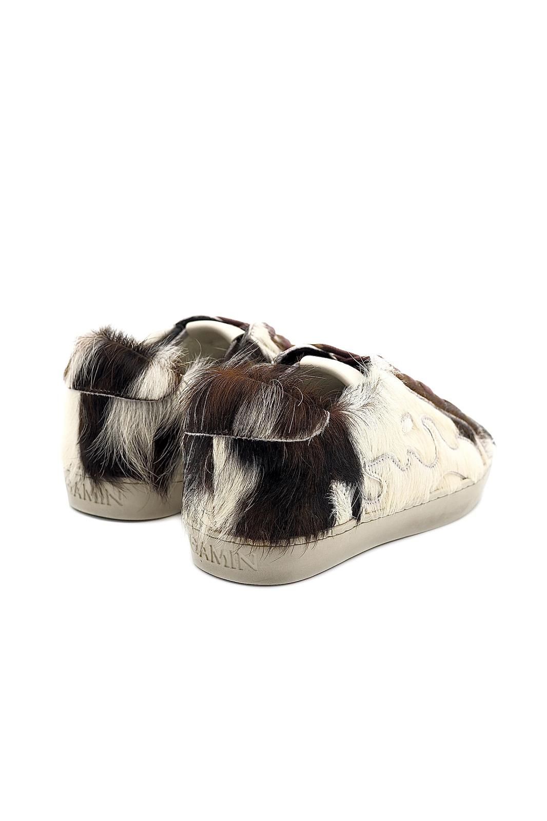 Baskets en faux poils noires, blancs et bruns