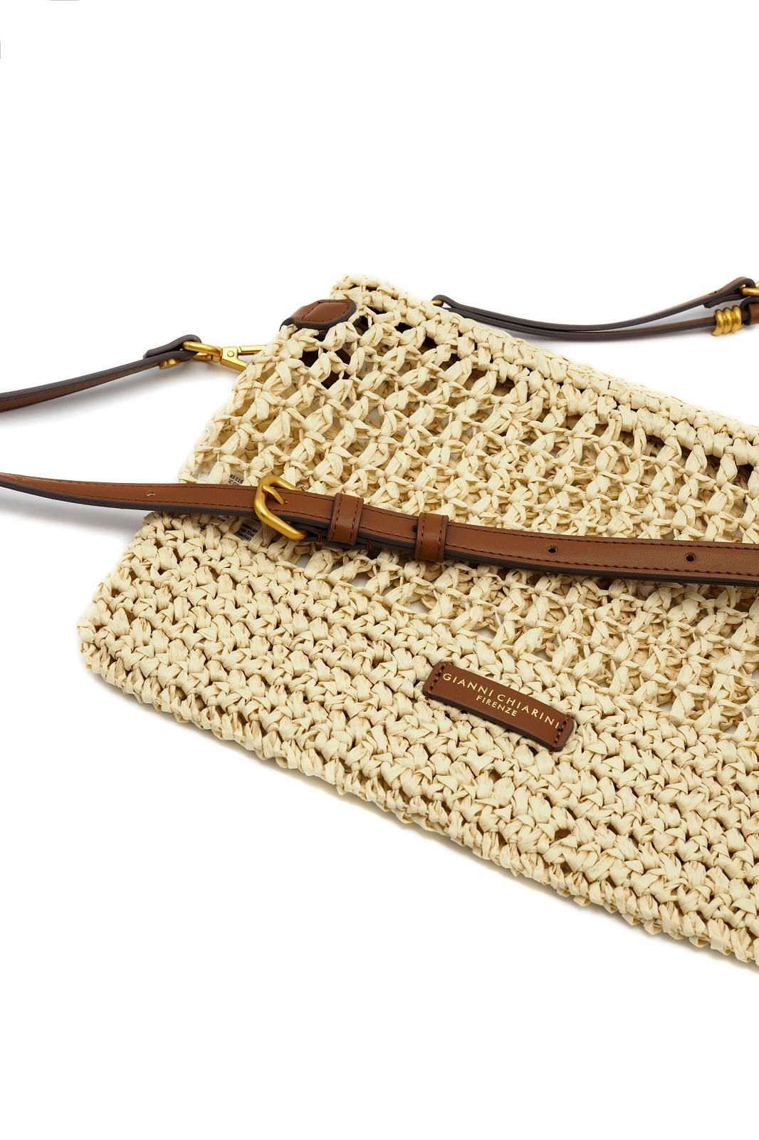 Ce sac cabas rectangle en rafia signé Gianni Chiarini, en noir et camel, associe lignes épurées et élégance intemporelle.