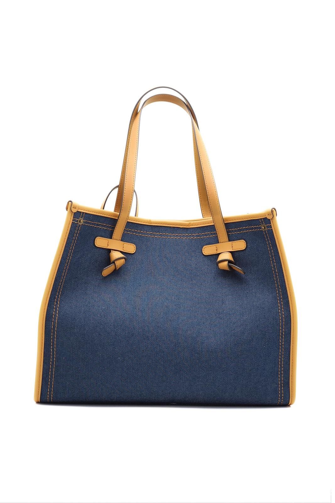 Ce sac en jean Gianni Chiarini, bordé de cuir, joue sur le contraste des matières pour une allure moderne et effortless.