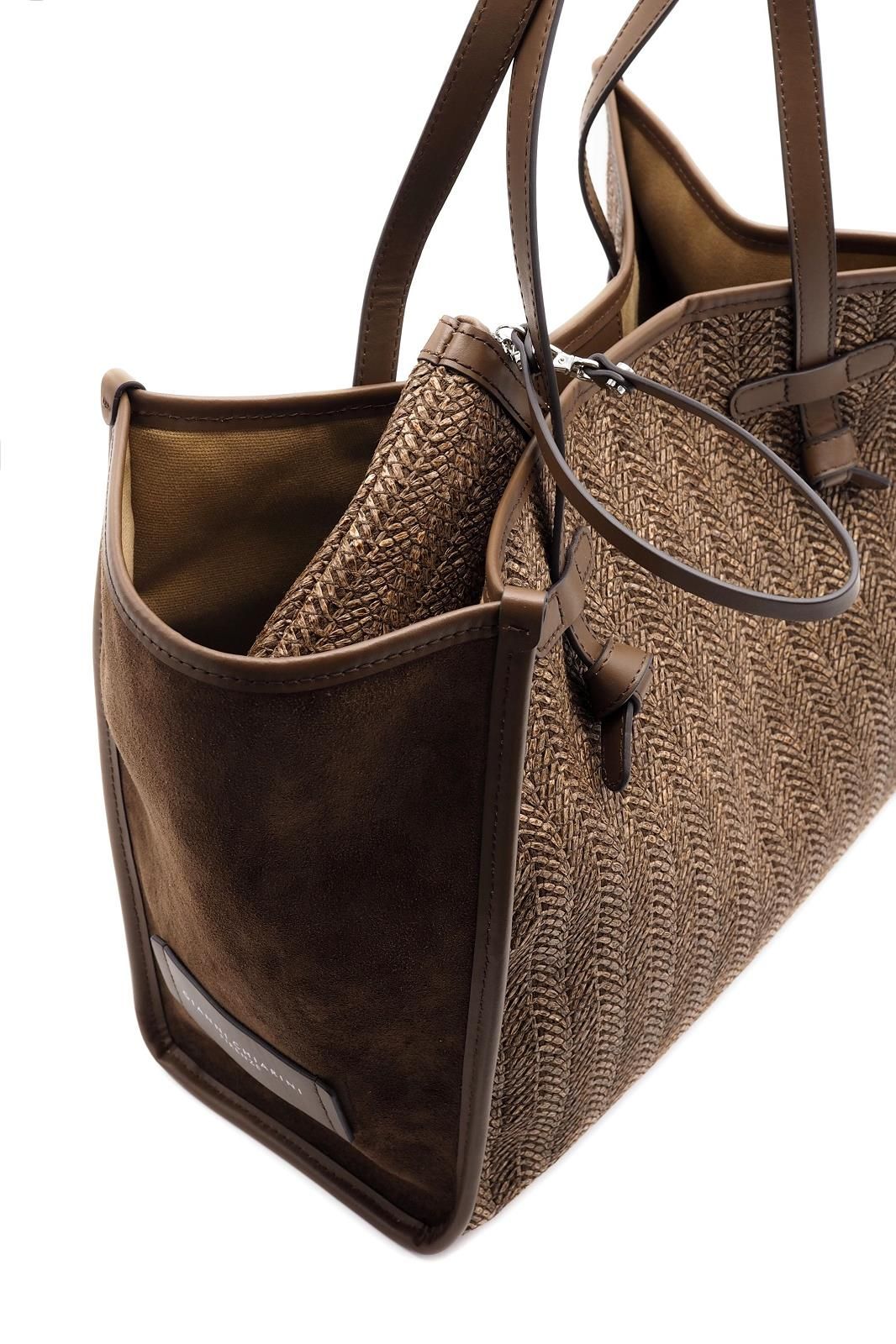 Le sac en raphia, véritable incontournable de la saison, s’impose comme une pièce ultra tendance, et la version tressée chocolat de Gianni Chiarini fait sensation.