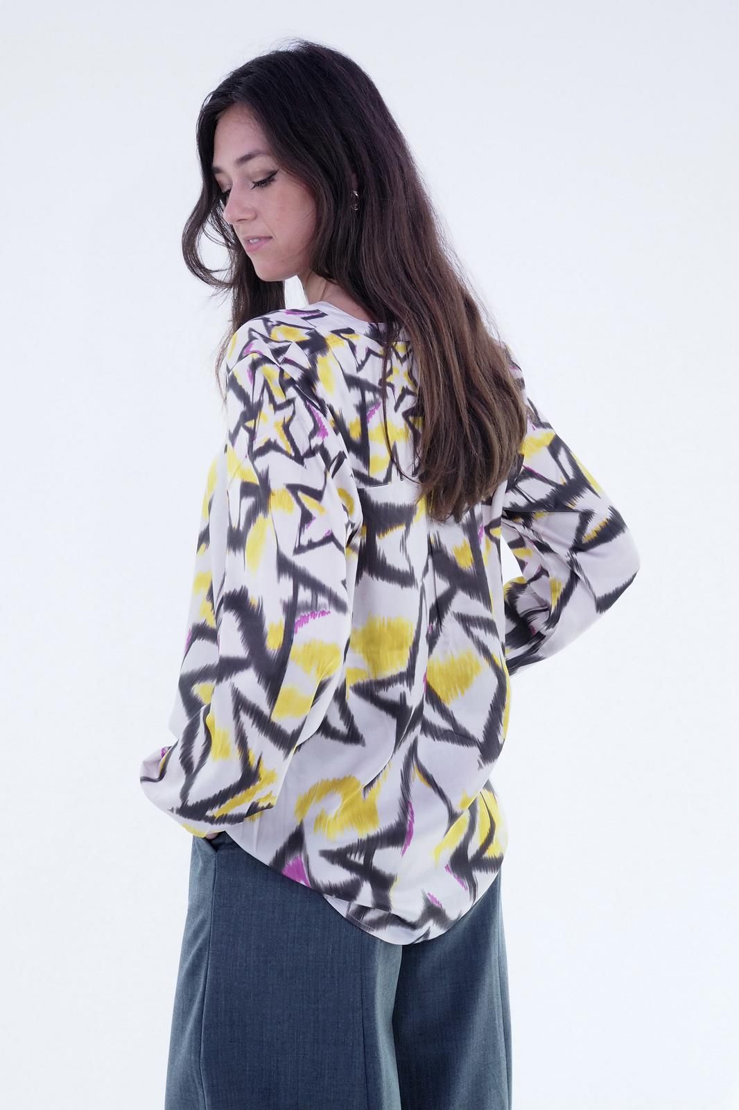 Blouse Couleur brun, jaune et fuschia Motifs étoiles Col en v Manches longues