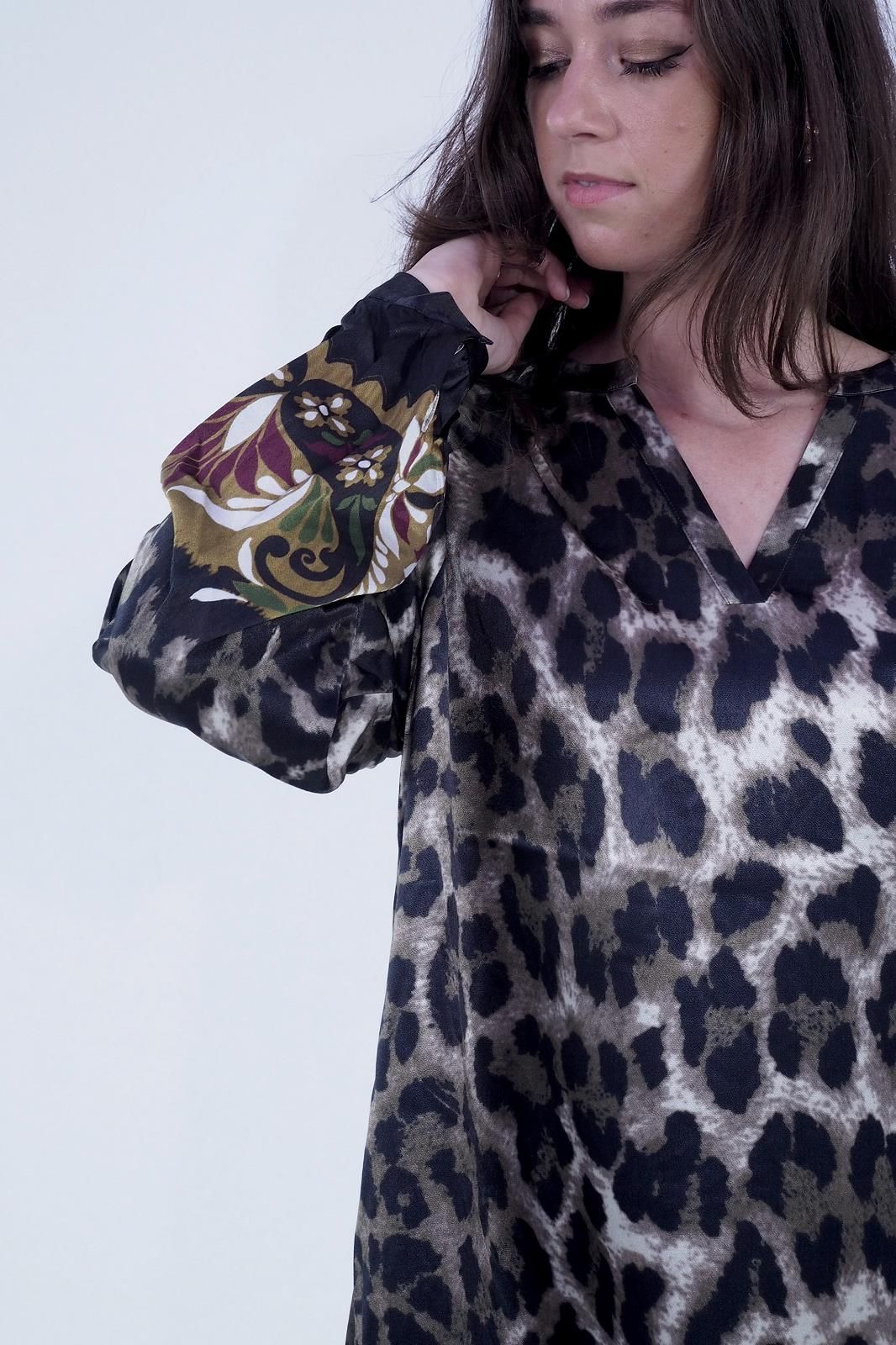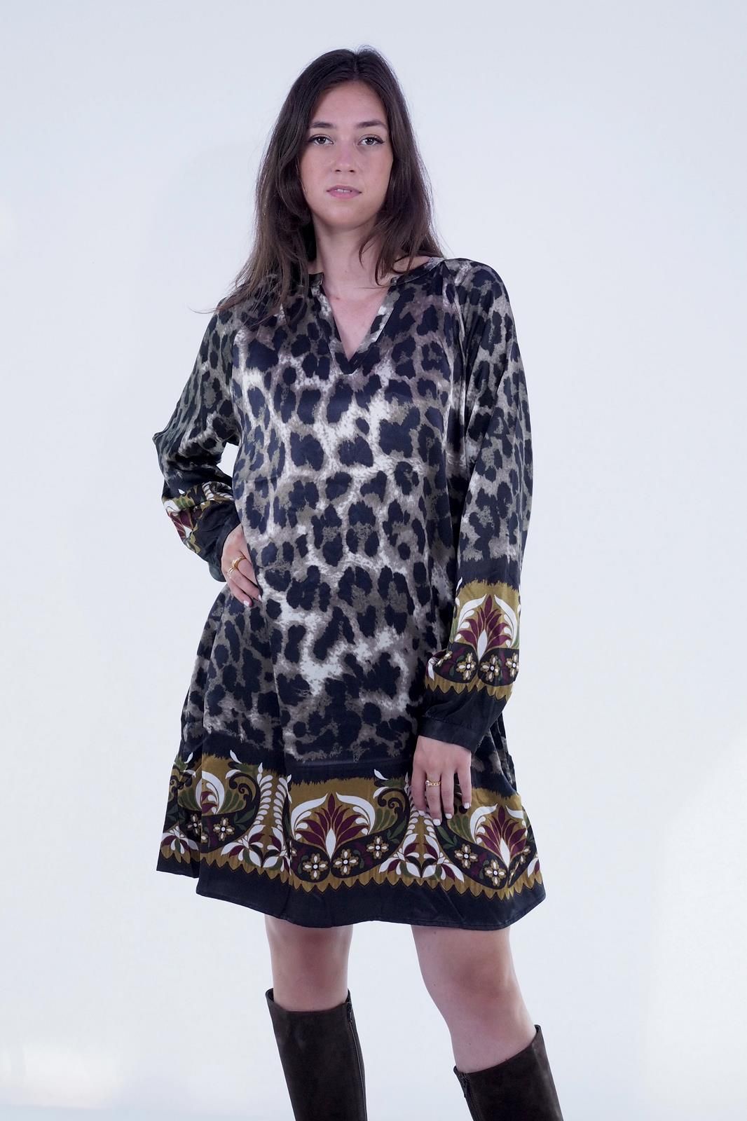 Robe kaki Couleur kaki Motifs léo Manches longues Col v Longueur genou