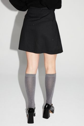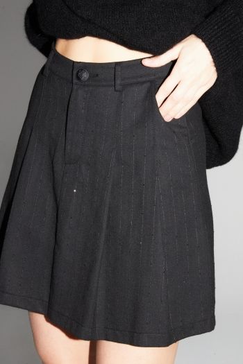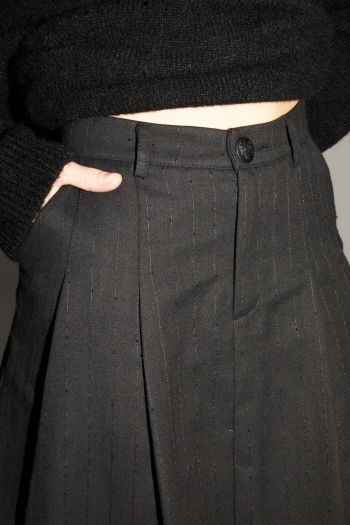 Pinces sur le devant, qui s’ouvrent en plis pour une allure collège structurée mais moderne