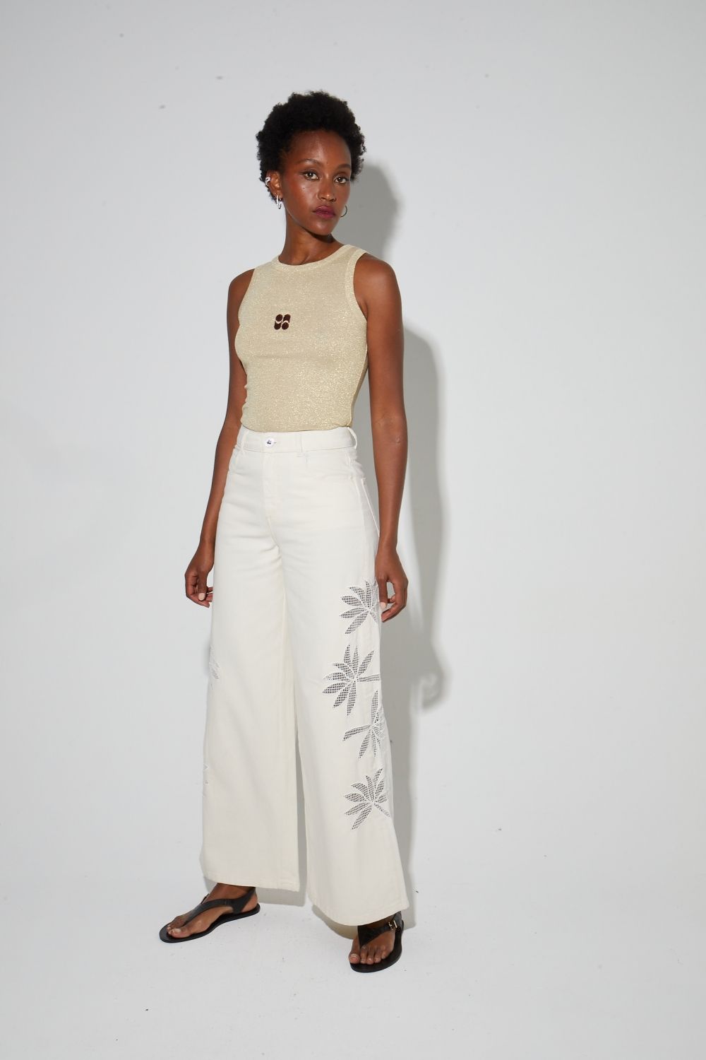 Le pantalon beige signé IMPREVU se distingue par ses délicates broderies, qui apportent une touche raffinée et originale à une coupe confortable et moderne.