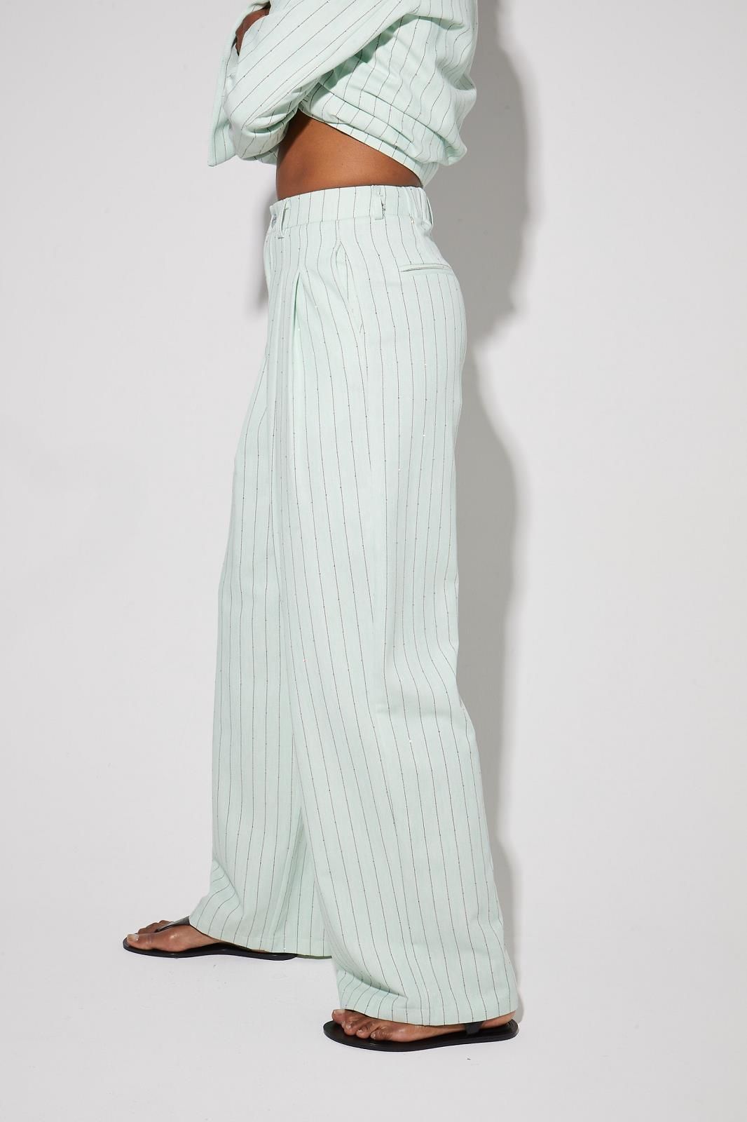 Pantalon vert d'eau ligné