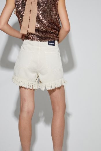 Short IMPREVU en denim écru, au style décontracté avec franges délicates, alliant confort et esprit estival lumineux.