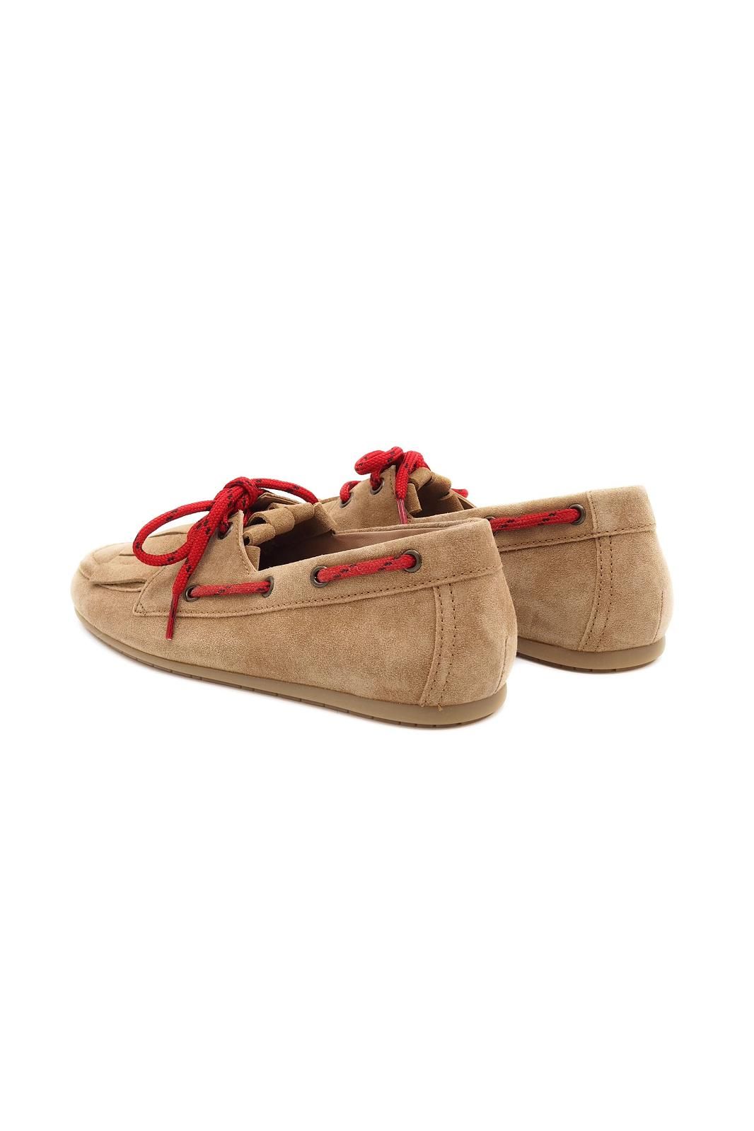 La paire de boatshoes en nubuck naturel KENNEL & SCHMENGER, agrémentée de lacets rouges et de franges, est à la fois élégante et originale, idéale pour dynamiser vos tenues casual avec style.