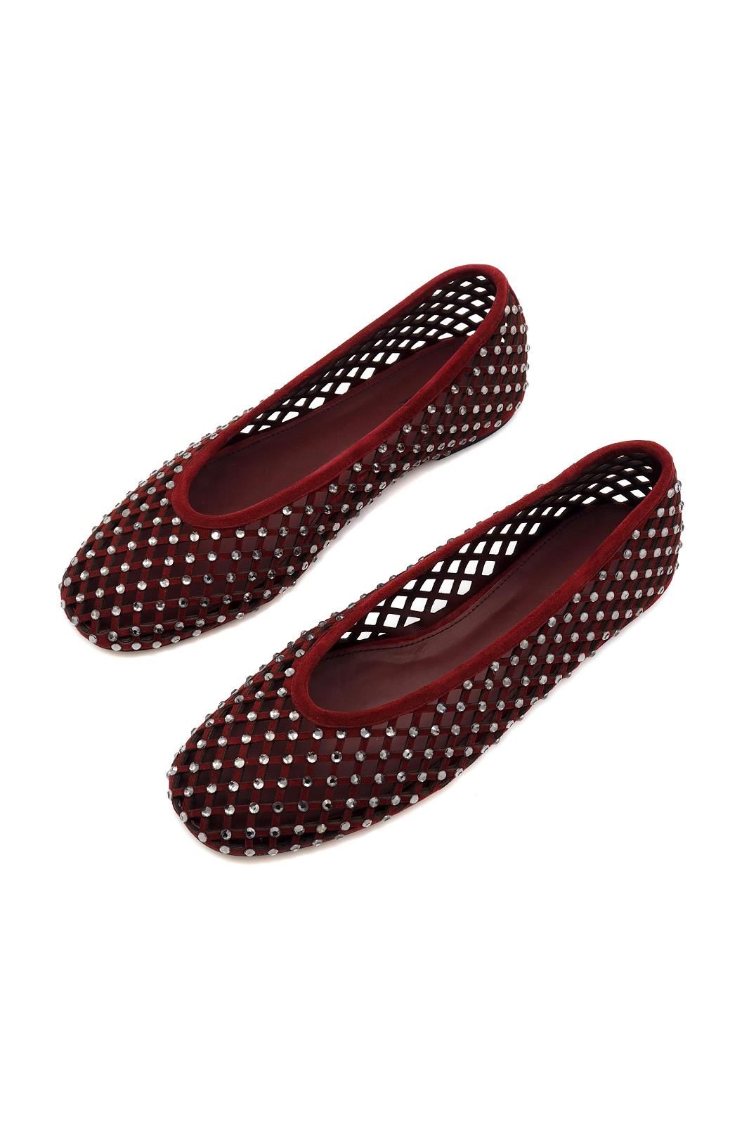 Ces ballerines perforées à strass en coloris bordeaux LOLA CRUZ sont au cœur des tendances.