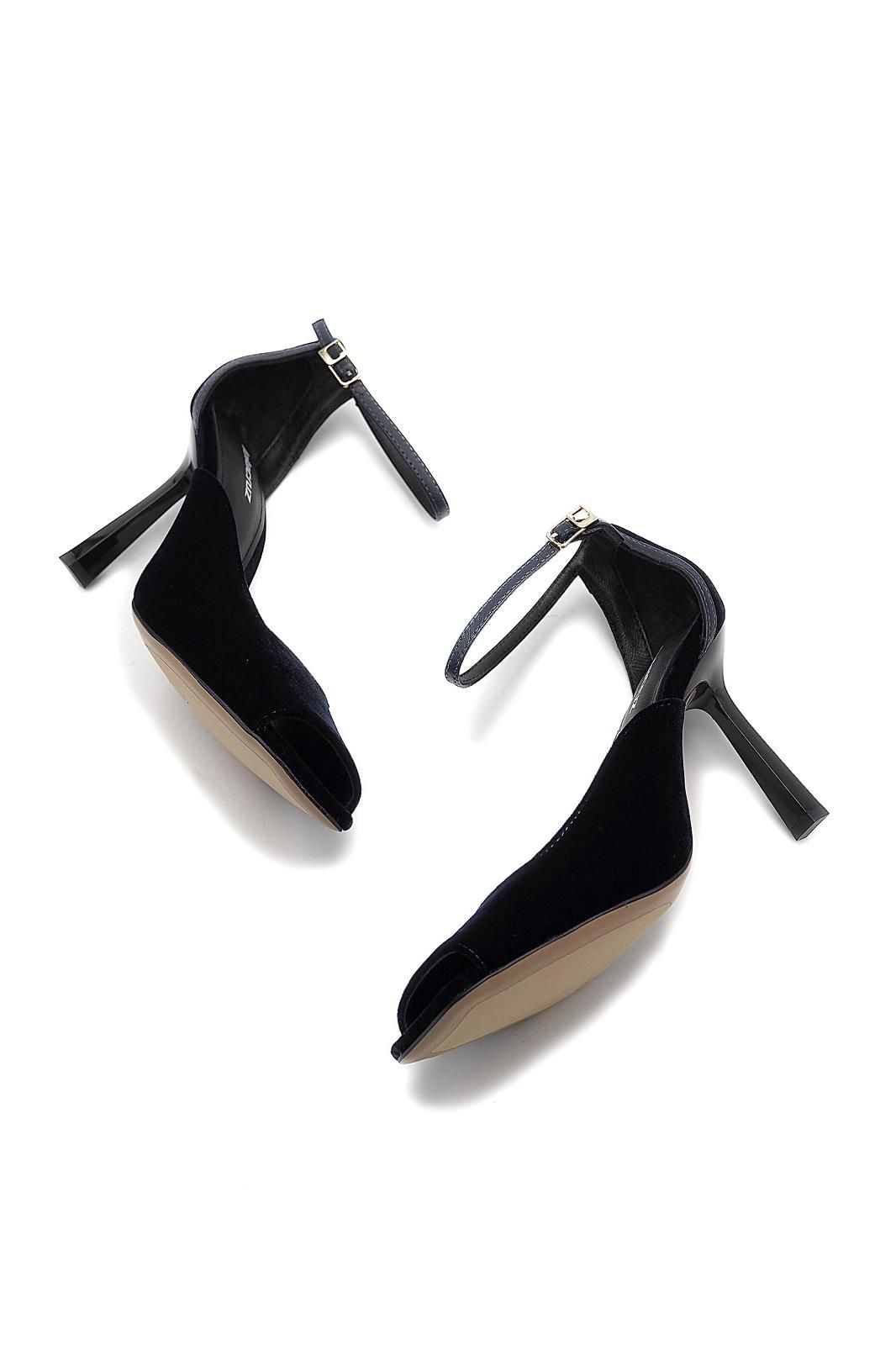 Escarpin en velours Couleur navy Bride cheville Talons haut Composition: cuir