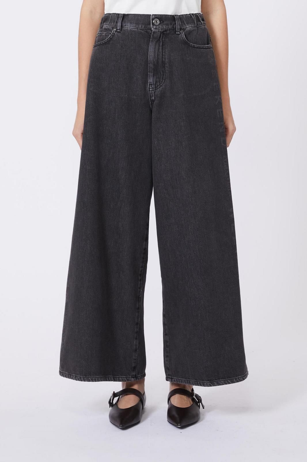 Jean 5 poches personnalisé avec un logo maxi imprimé au laser