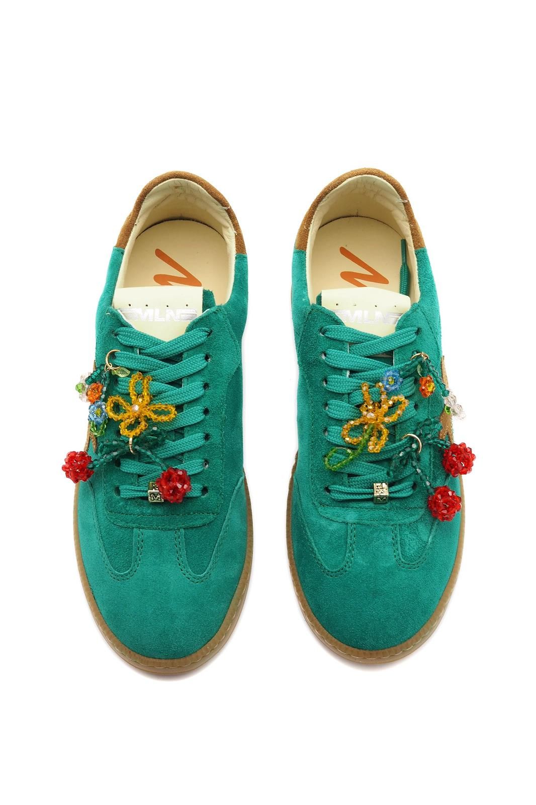 Apportez fraîcheur et originalité à vos looks avec ces baskets vertes MELINE, rehaussées de lacets en dentelle et perles.