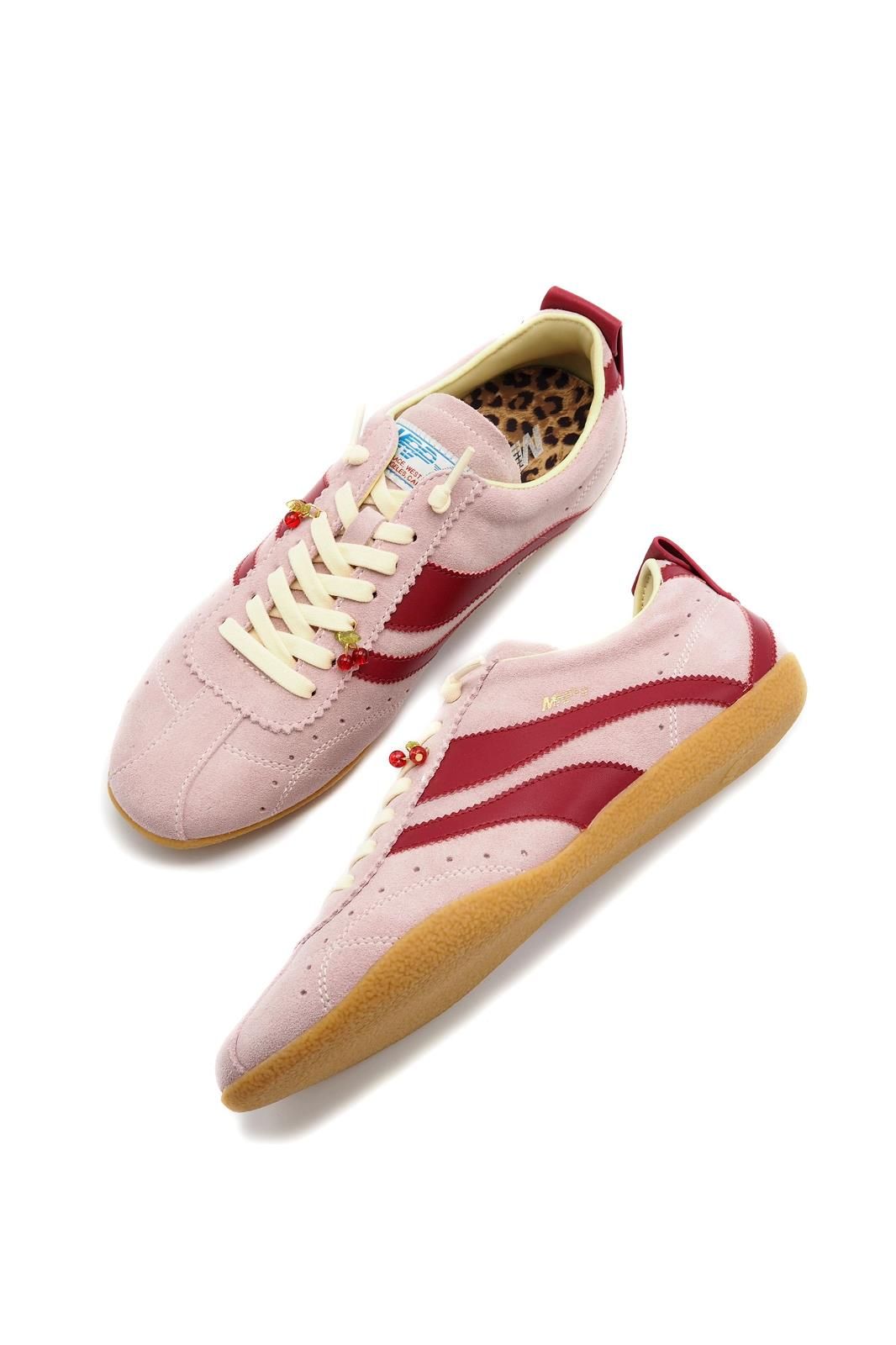 Avec leurs mini-cerises décoratives sur les lacets et leur délicieuse combinaison de rose et bordeaux, ces baskets signées MRP sont à la fois délicates et irrésistiblement mignonnes.
