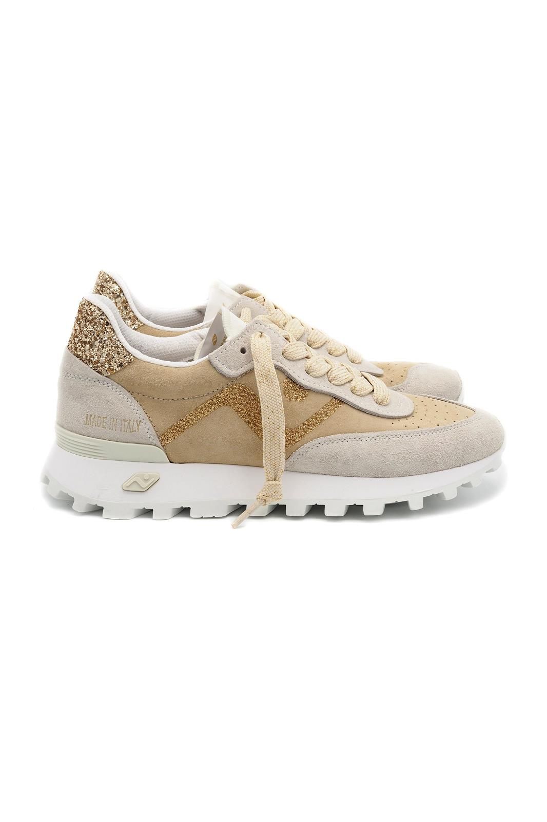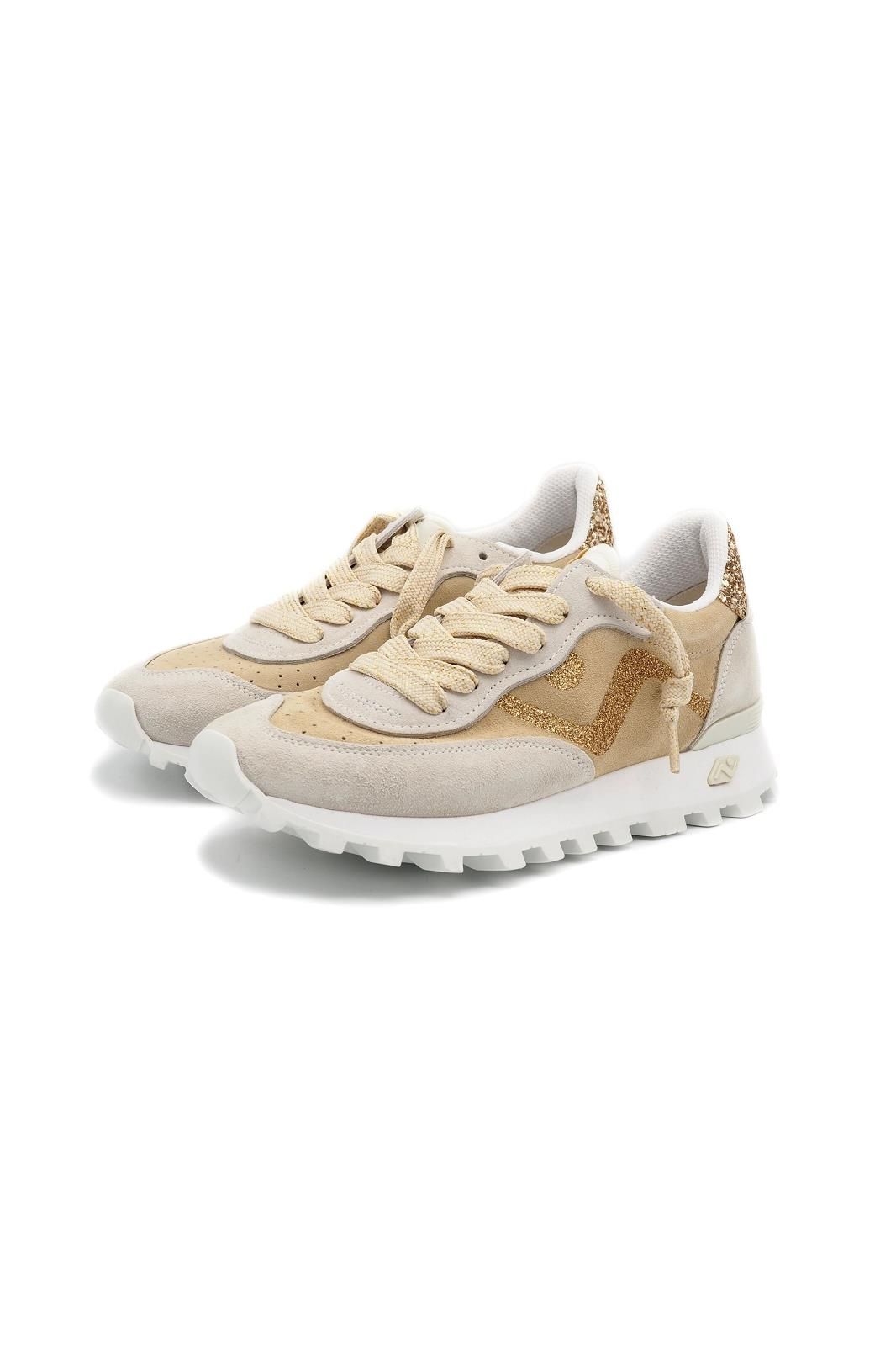 Ces baskets élégantes signées NO MAP SOCIETY sont à la fois douces et lumineuses. Leur alliance de doré et d’écru crée une harmonie parfaite, subtile et raffinée.