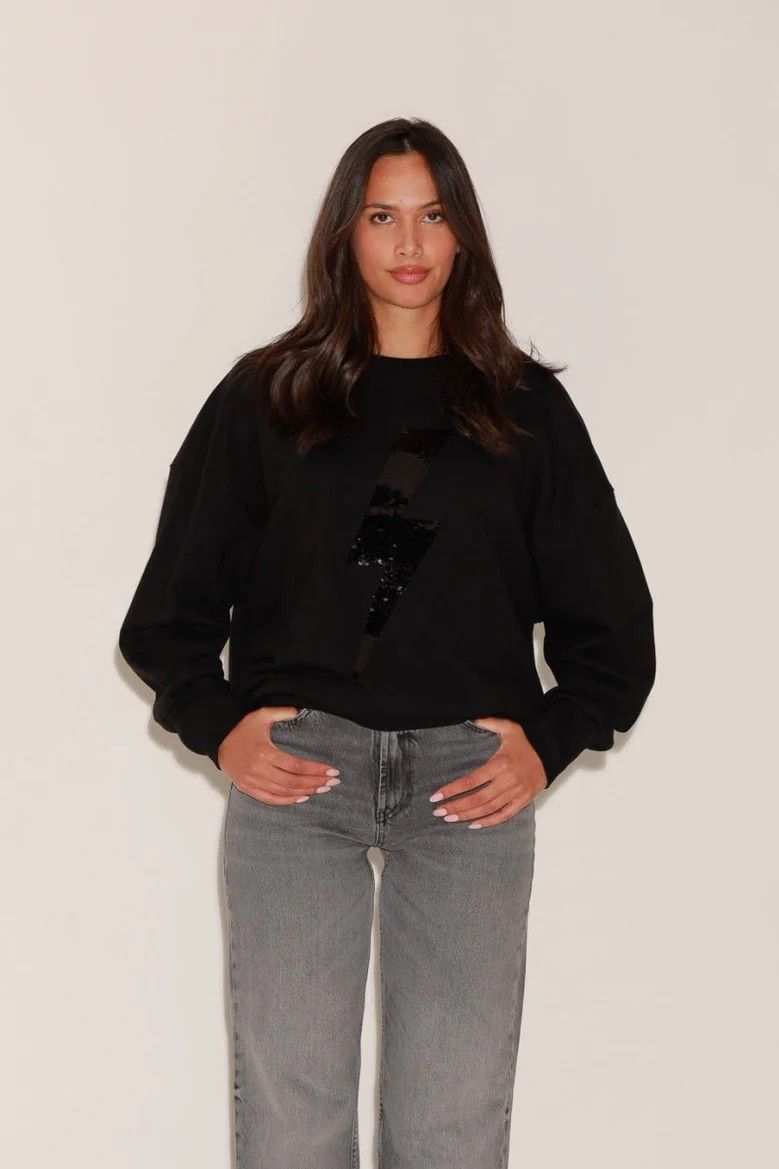 Sweat noir Logo éclair en sequins noir Manches longues Composition: 100% coton