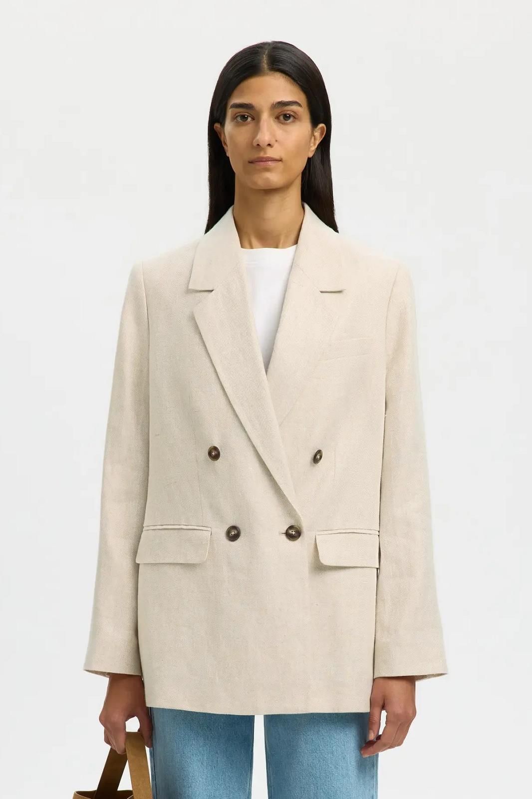 Un blazer élégant à la coupe croisée italienne. Une couleur sobre, une matière chic. Le tout forme un blazer moderne mais intemporel, qui inspire le "quiet luxury"