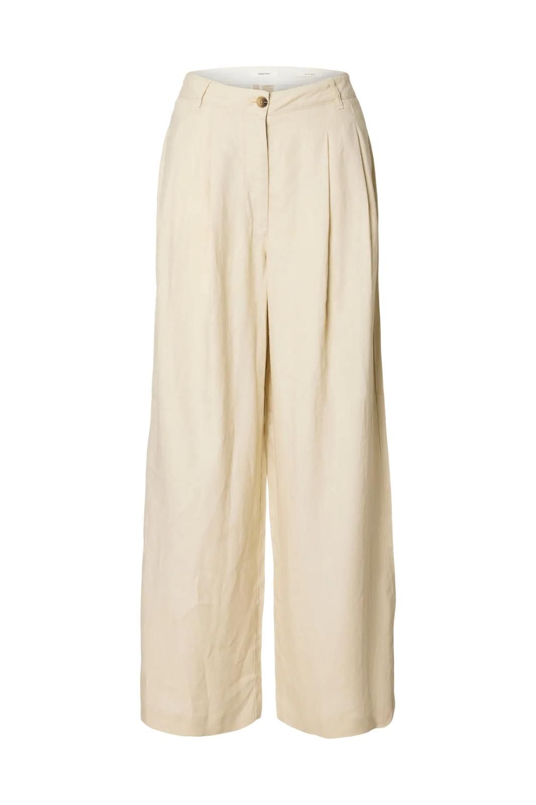 Pantalon beige SELECTED. Sa composition 100% lin vous permettra de porter un pantalon léger et agréable tout l'été. On le marie avec des hauts neutres ou colorés.