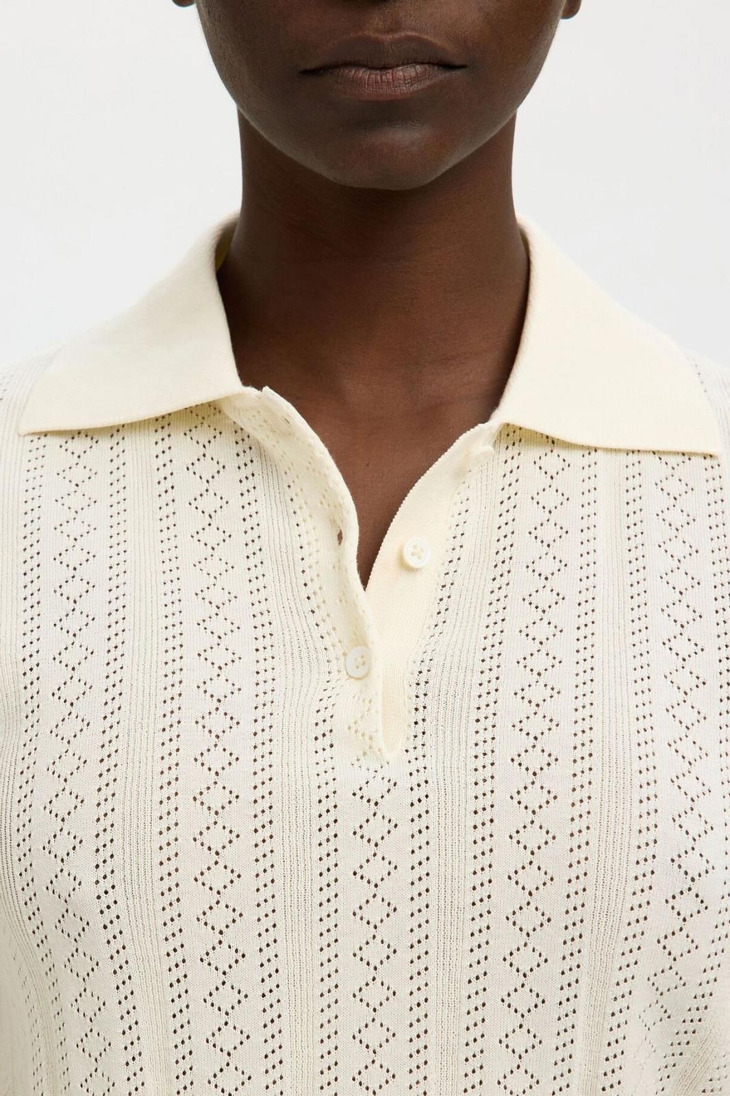 Ce polo en maille SELECTED se porte avec un jeans ou un tailleur. Grâce à sa couleur neutre, vous pourrez l'associer très facilement !