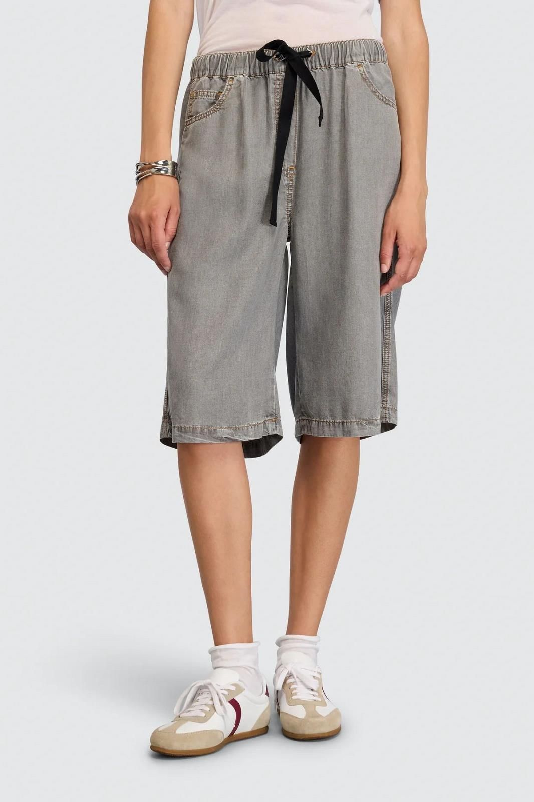 Bermuda en jean gris signé SEMICOUTURE, souple et confortable, idéal pour un look printanier décontracté.