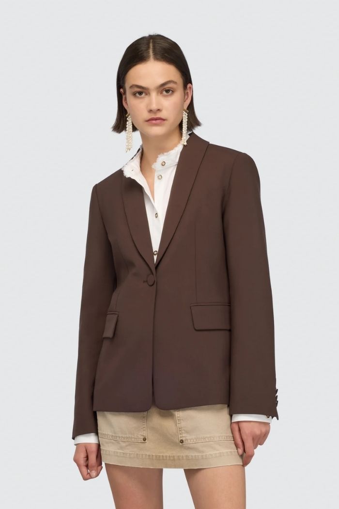 Ce blazer SEMI COUTURE est coupé droit et ouvert dans le dos. Associez-le avec une blouse en dentelle ou surprenez avec un dos nu.