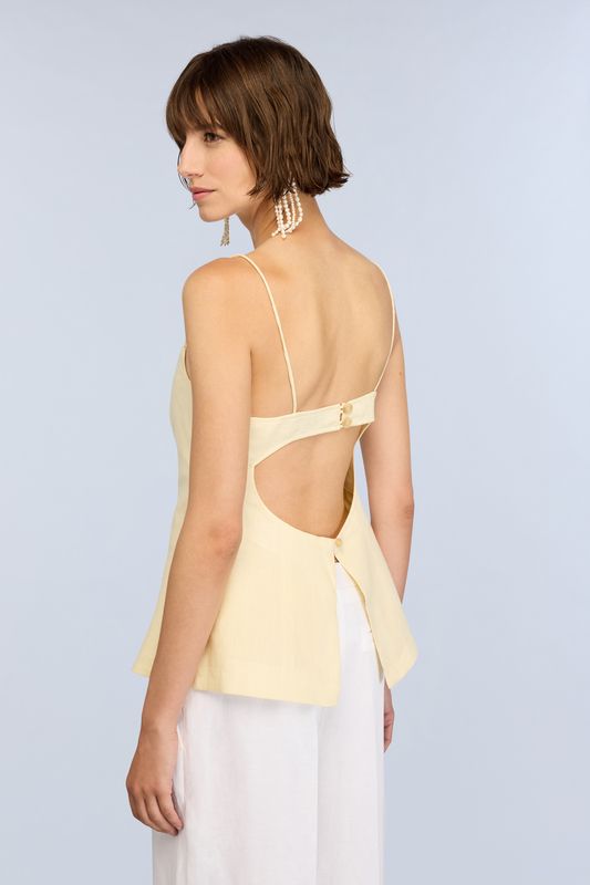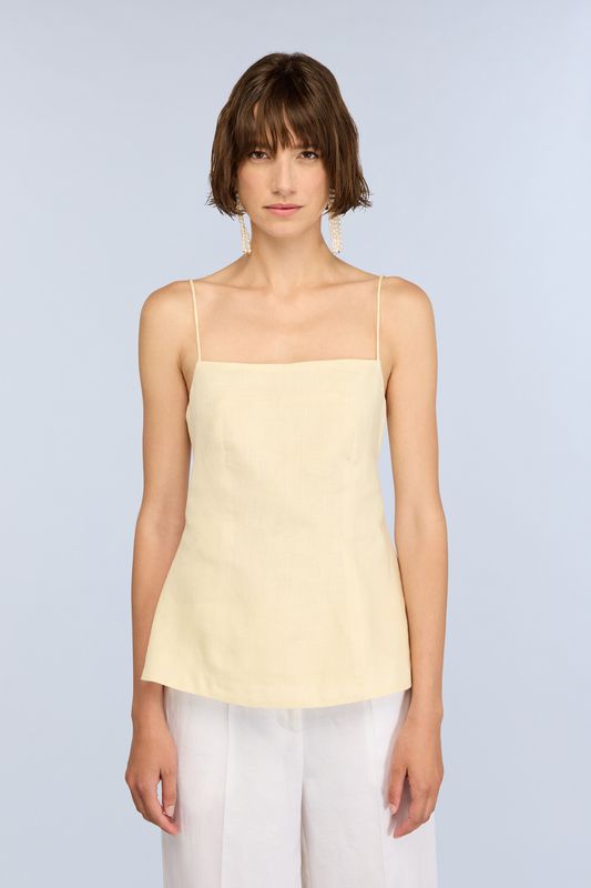 Ce top en lin SEMI COUTURE à fines bretelles séduit par sa légèreté et son élégance naturelle. Son dos ouvert apporte une touche délicate et féminine, parfaite pour les beaux jours. Facile à associer, il se porte aussi bien avec un jean qu’une jupe pour un look estival chic et décontracté.