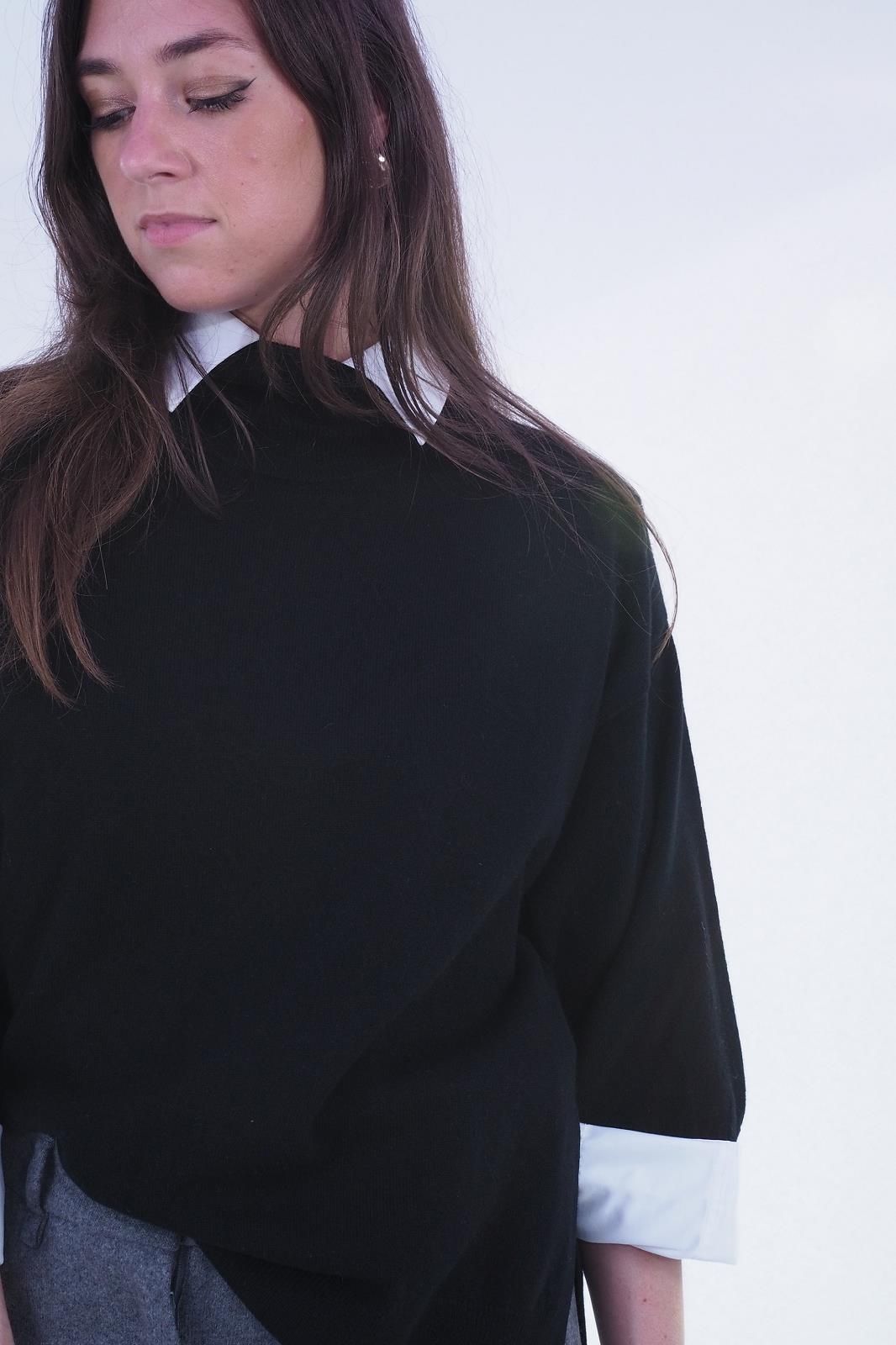 Pull noir Coupe oversize Manches 3/4 Col rond