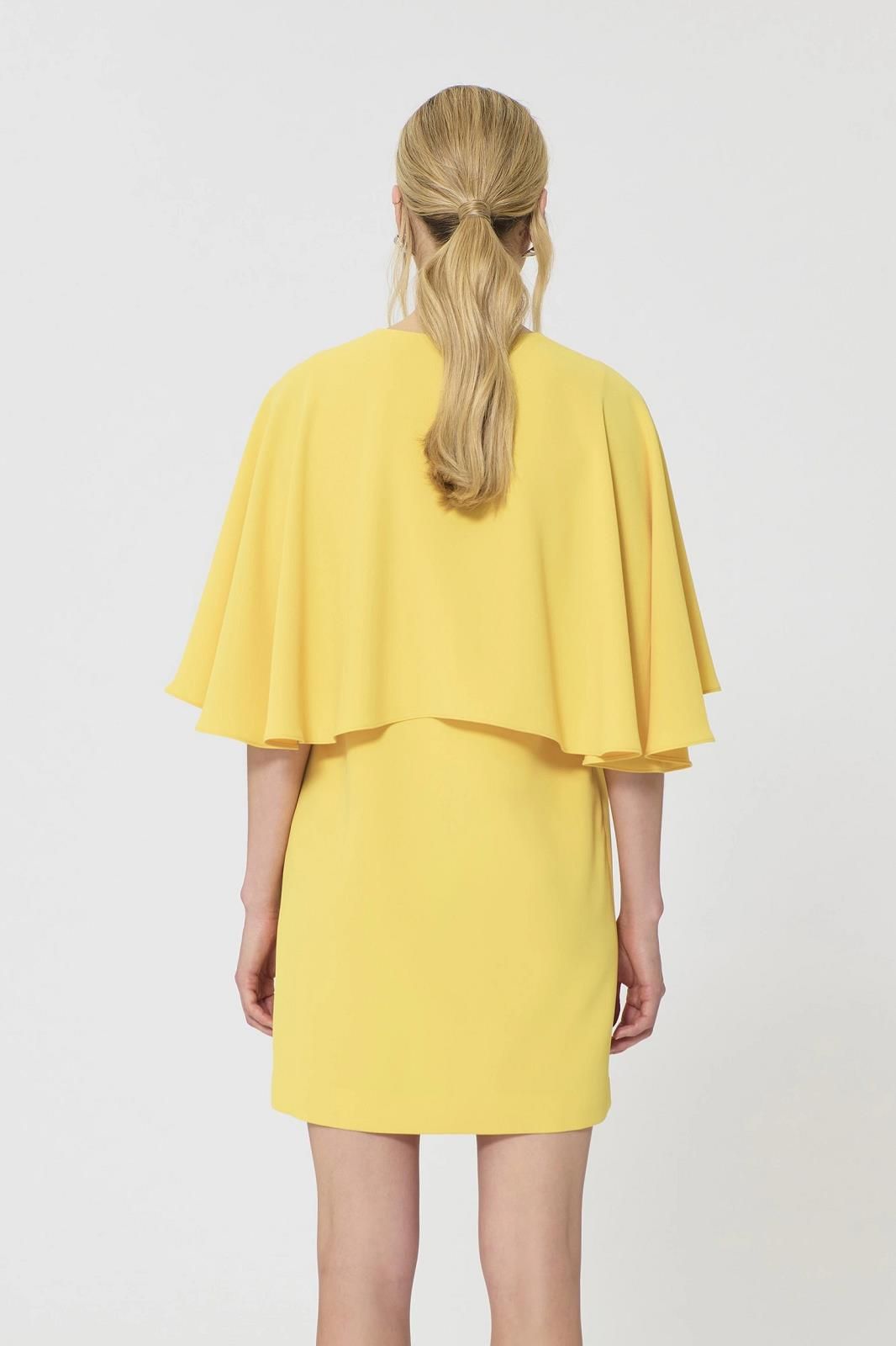 La robe trompe-l’œil TARA JARMON d’un jaune éclatant, au style cape fluide, apporte une touche d’audace et de légèreté à vos tenues, pour un look chic et solaire.