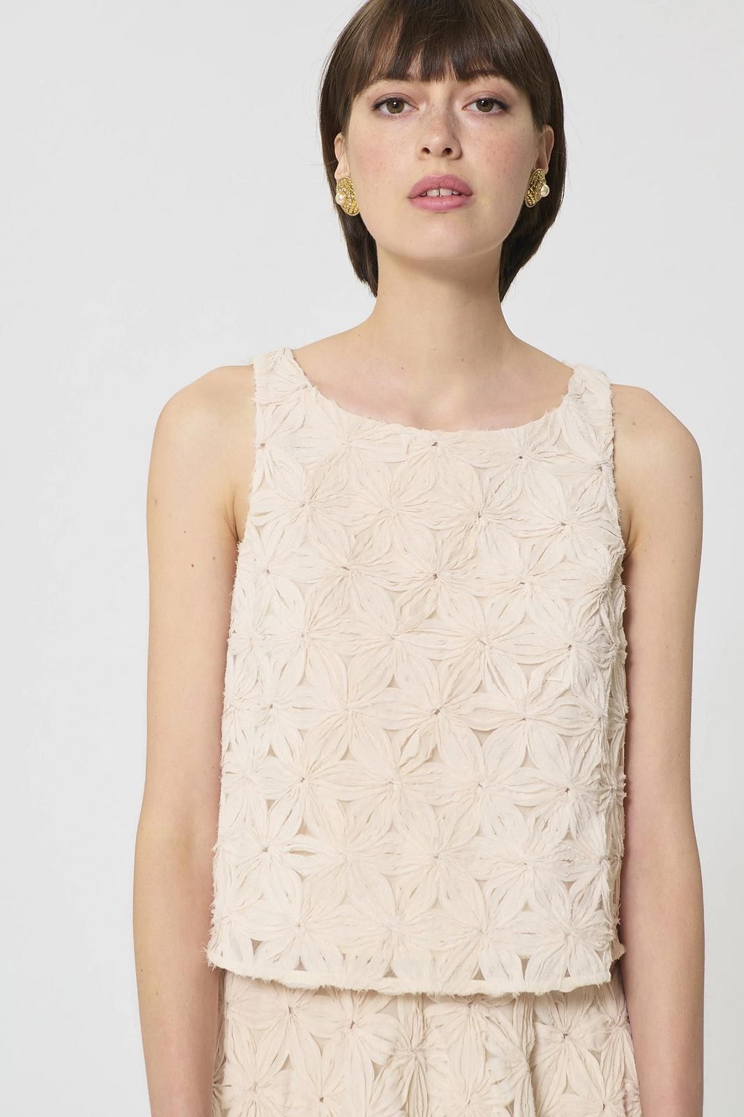 Le top à fleurs brodées TARA JARMON : raffiné et poétique, il transforme chaque tenue en un look élégant et plein de charme.
