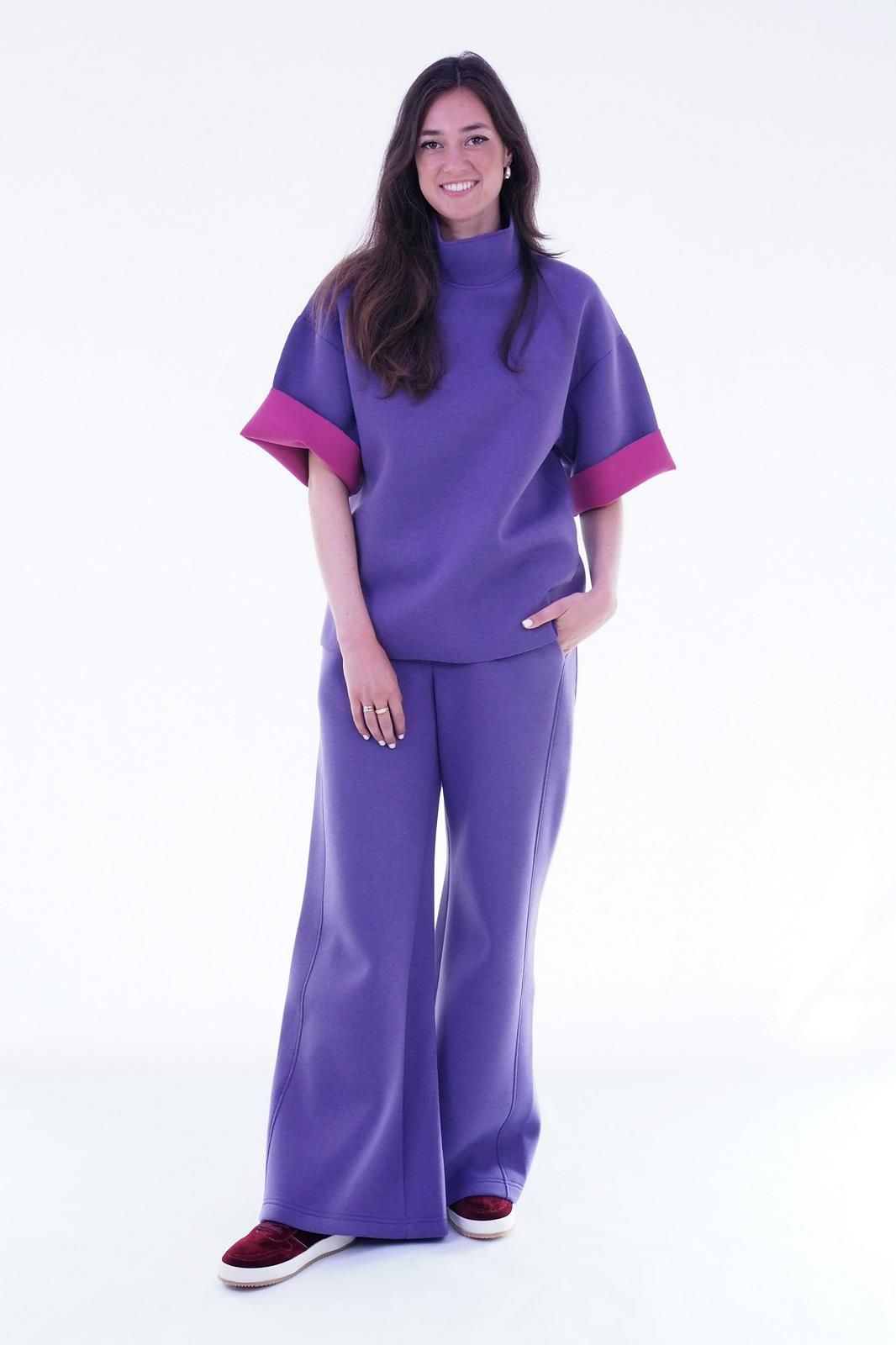 Pantalon en néoprène Couleur mauve Coupe large
