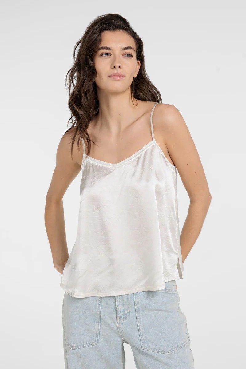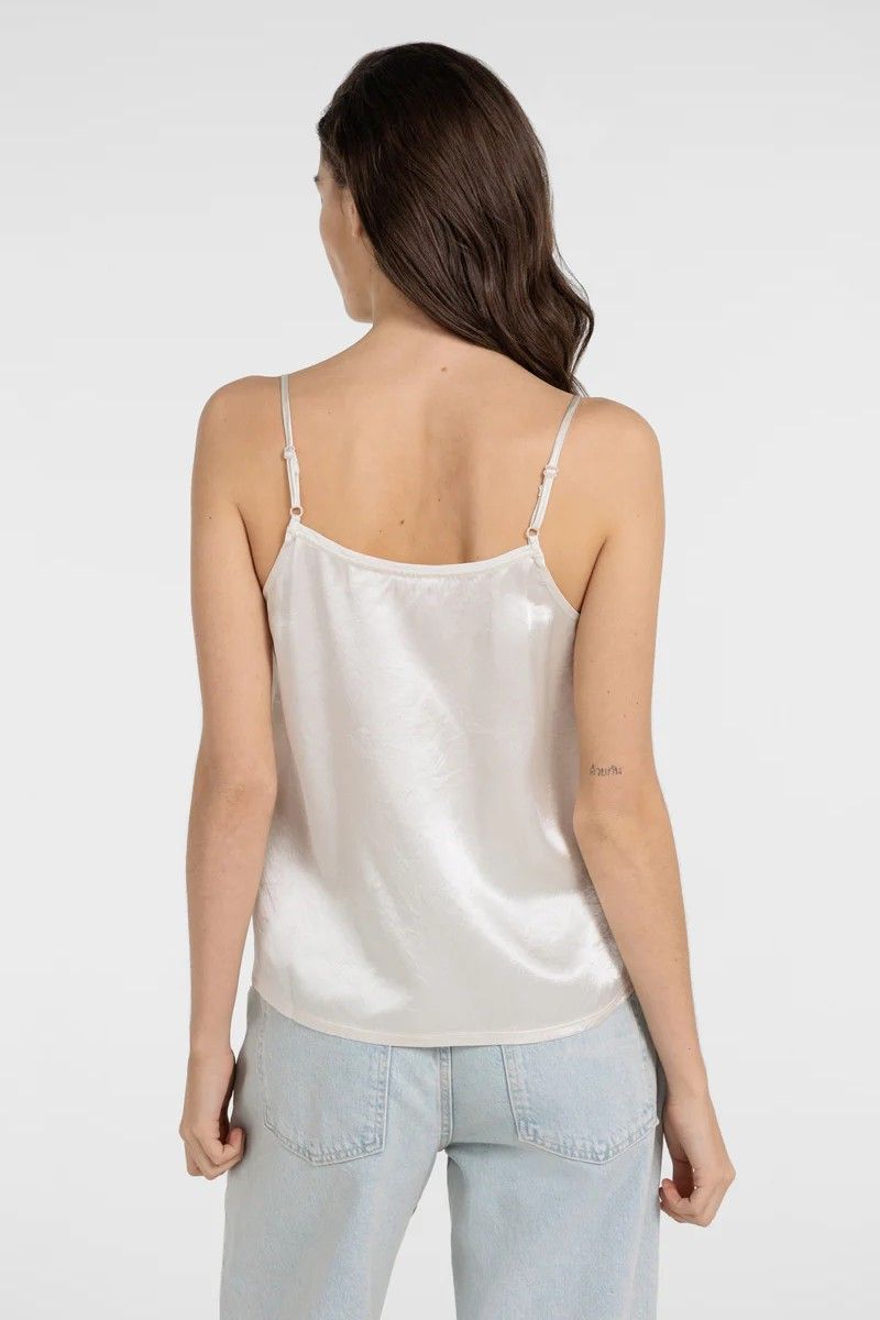 Top en satin crème YAYA, à la coupe ajustée qui souligne la silhouette avec élégance.