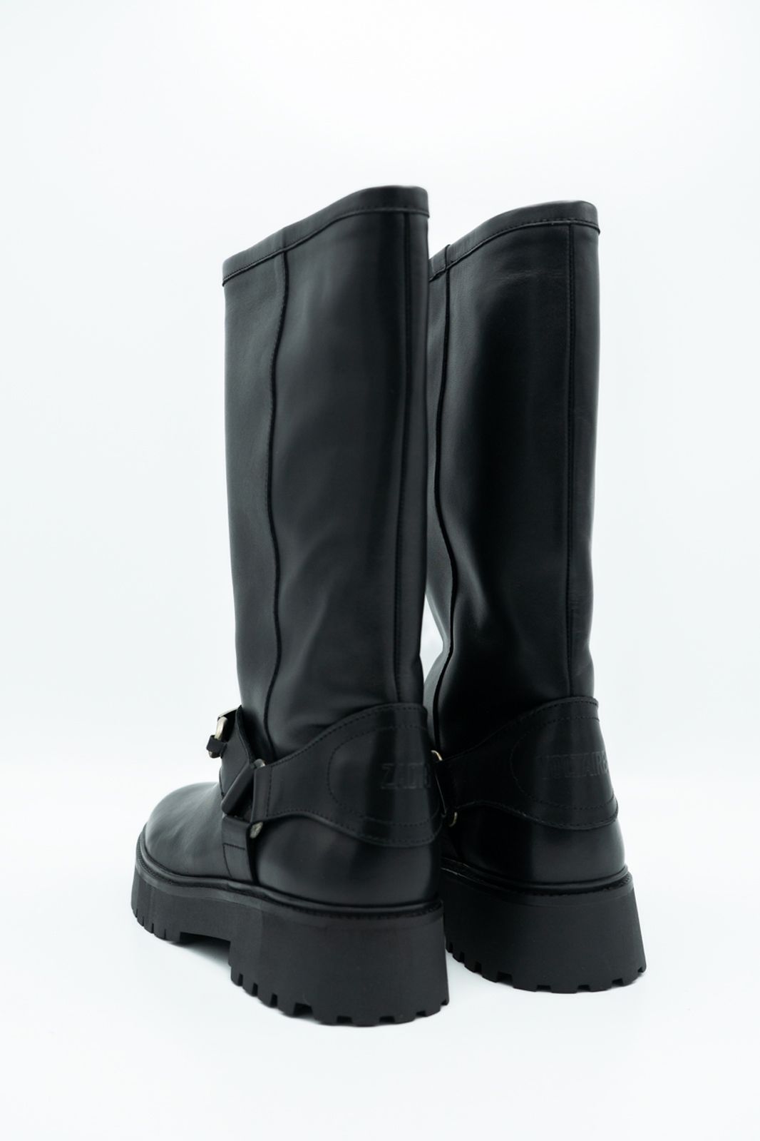 Botte en cuir noir avec triangle métal