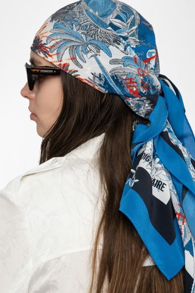Écharpe en soie à imprimé jungle Couleur bleu multi 85 x 85 cm Composition: 100 % soie