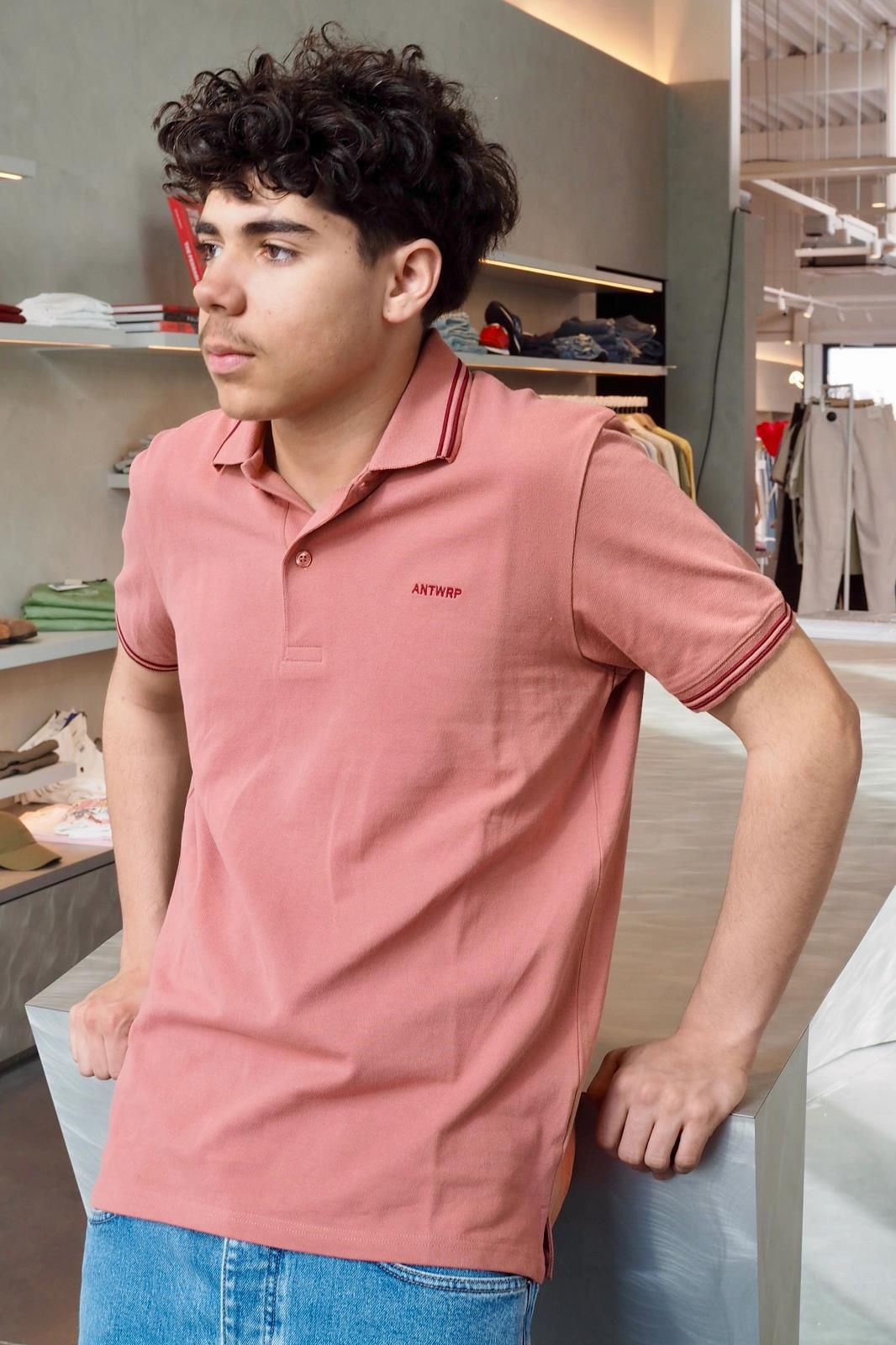 Polo ANWTRP rose et bordeaux avec surcoutures. Une couleur rosée qui apportera une touche de soleil dans votre tenue, une belle coupe droite avec des boutons de fermeture au col.
