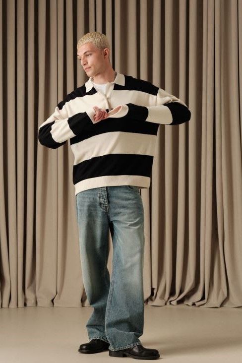 Polo rugby Manches longues Couleur navy et beige