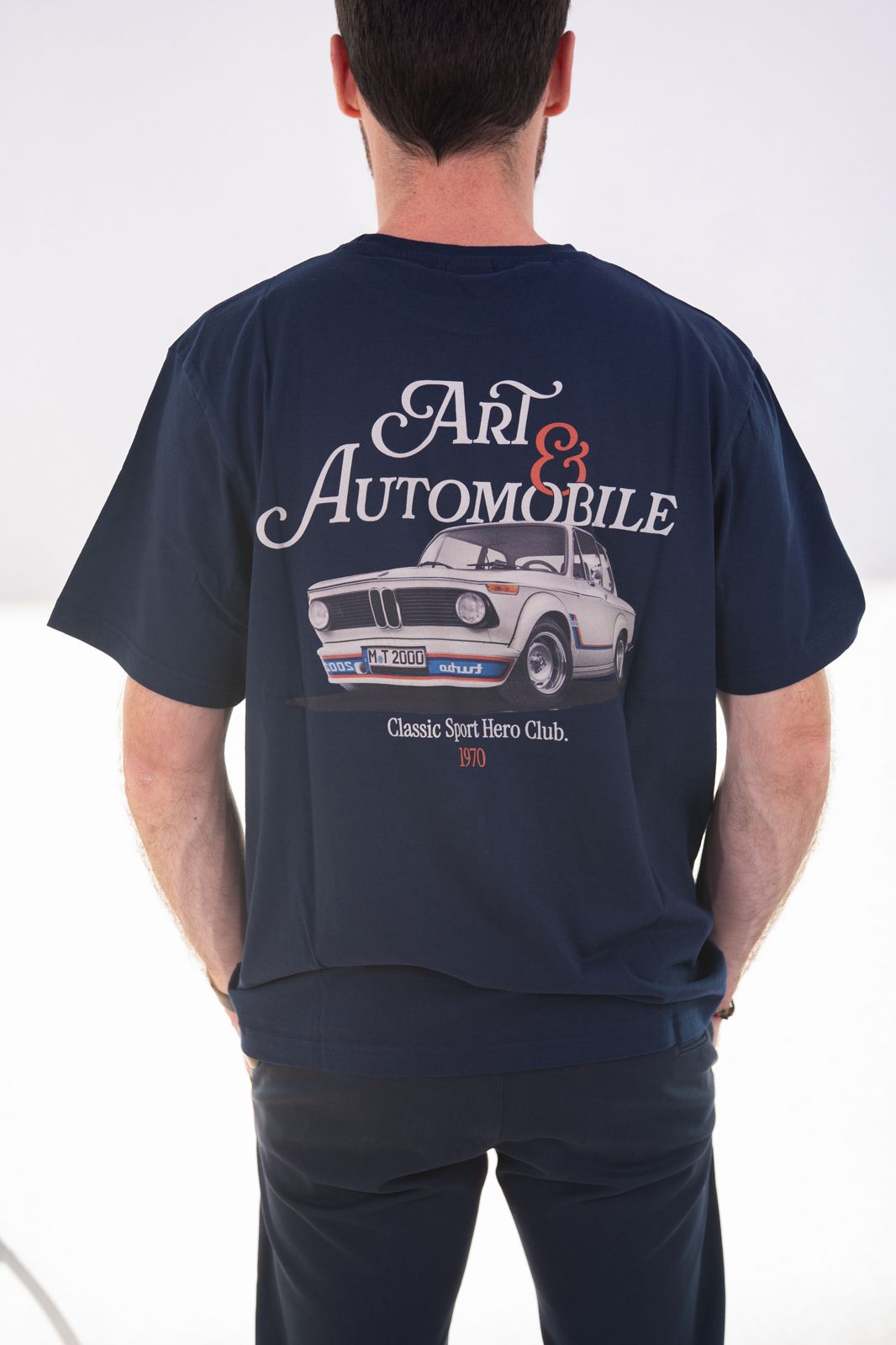 T-shirt bleu BMW Vintage Inscription "art & automobile"