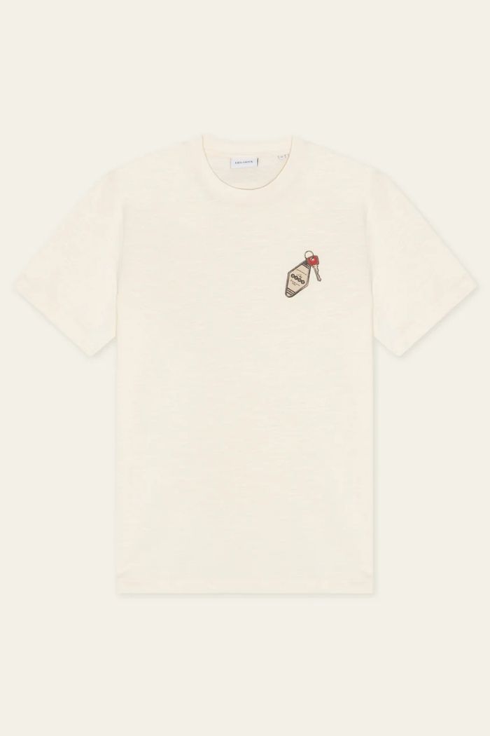 Tee-shirt blanc basique de la marque Les Deux avec sa petite touche de fun à l'avant !